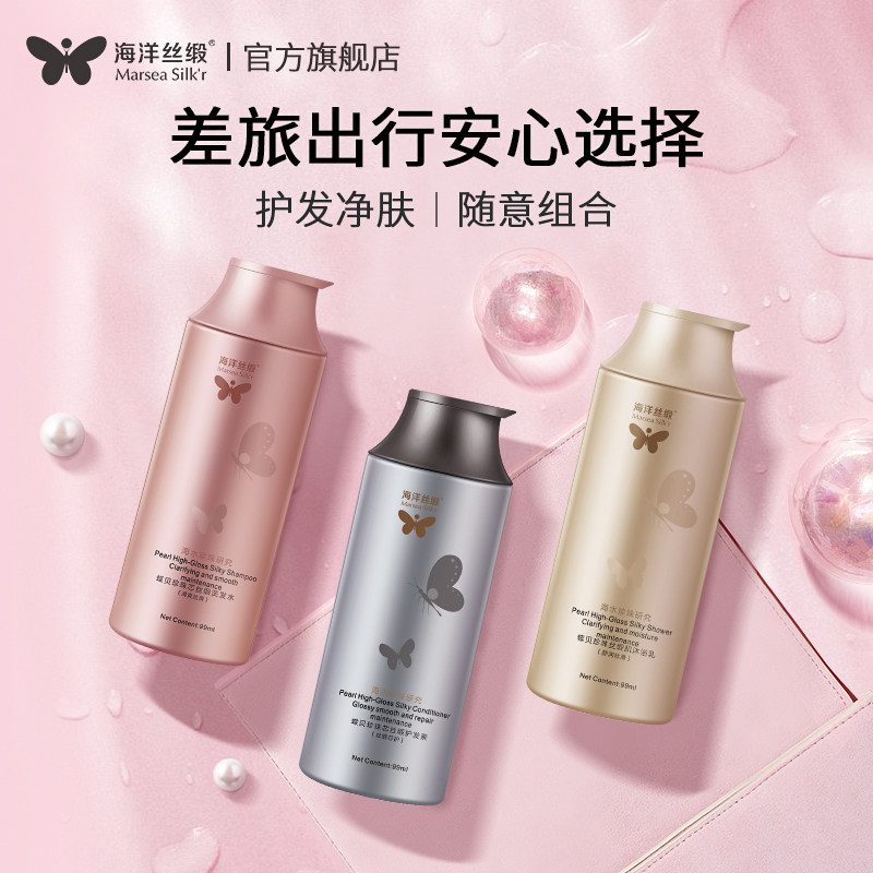 - Освежающий шелковистый шампунь, гель для душа, кондиционер, 99 мл, 99 мл, 99 мл