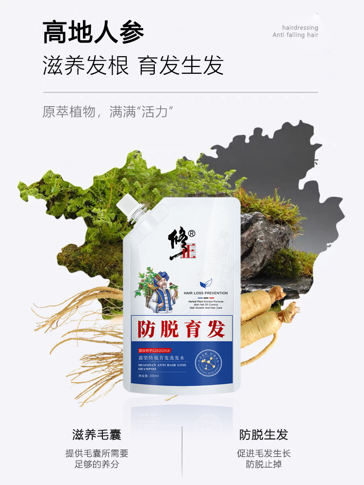 Анти -дивертальный шампунь для волос, женьшень, увеличение волос, плотный переход с волосами черный размножение жидко