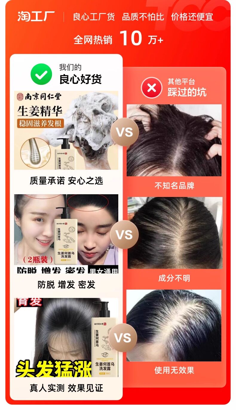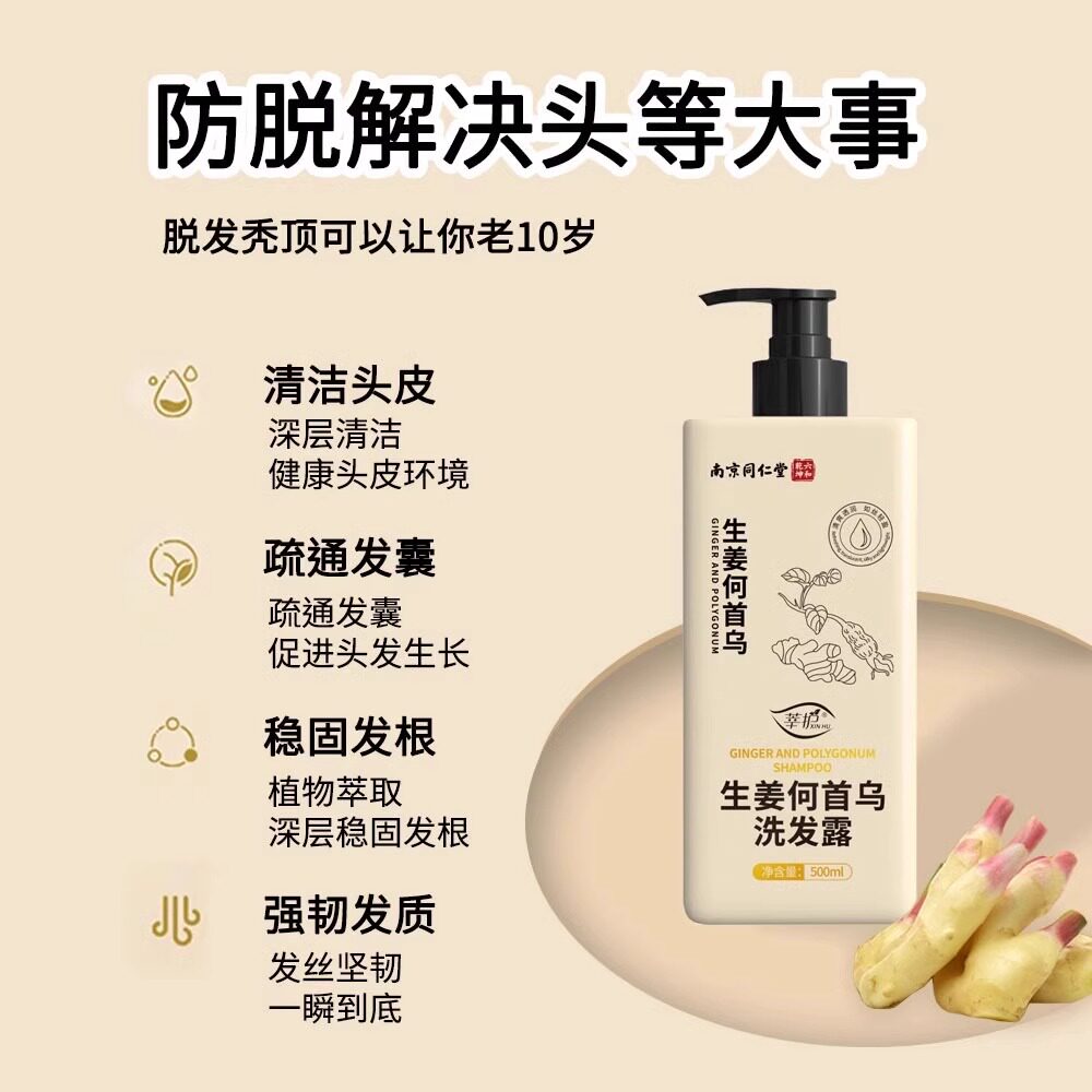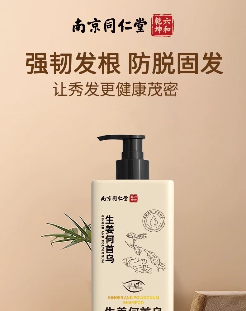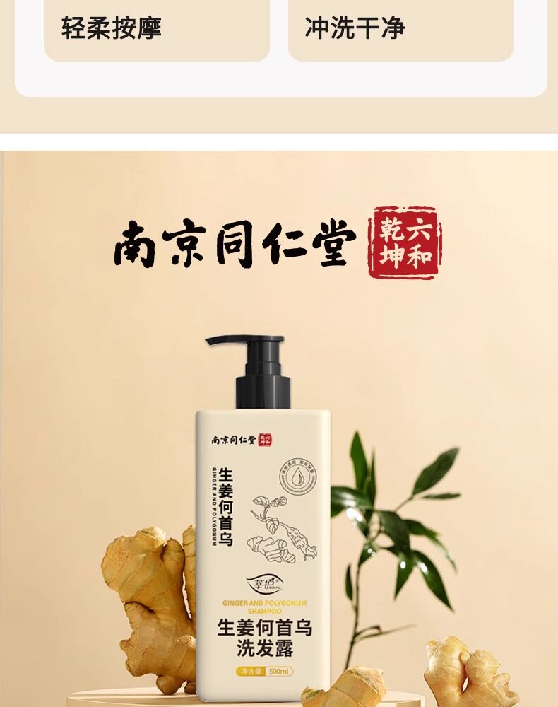 Tongrentang, шампунь с имбирем подходит для мужчин и женщин, в составе Горец многоцветковый, удаление перхоти, контроль жирного блеска, придает объем