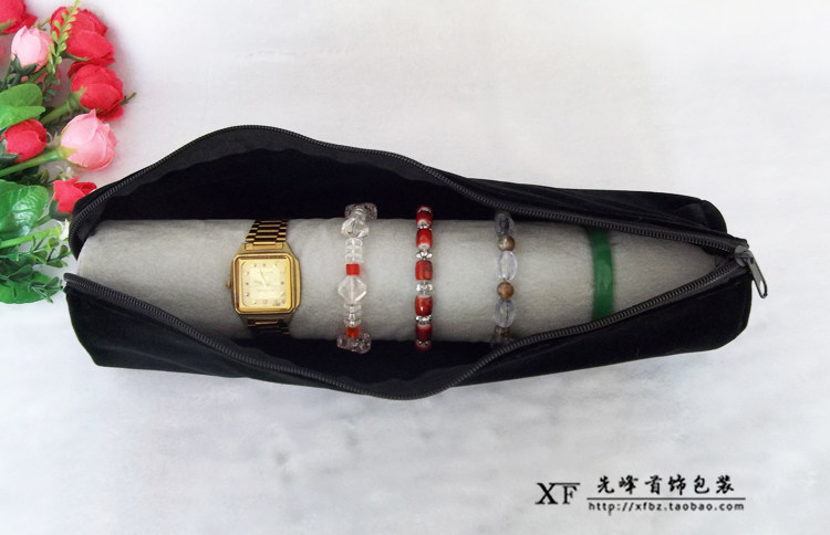 Рулон украшений для браслетов: внешняя черная бархатная сумка на молнии имеет длину 36 см;Стержень браслета-губки, диаметр 6 см, длина 32 см.