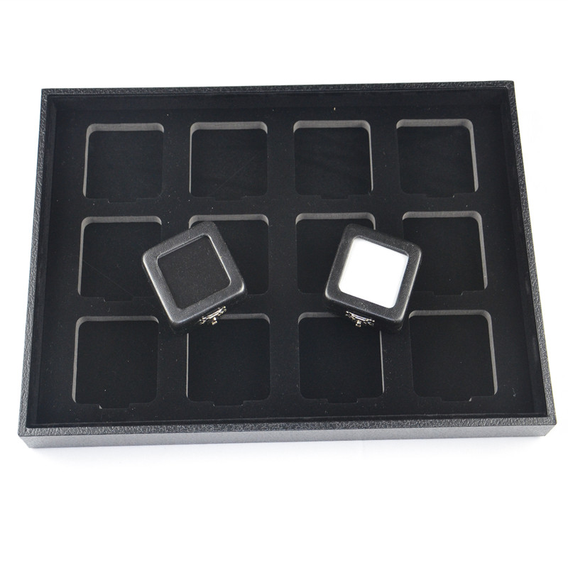 Шахта для ювелирных изделий пустая лоток патентная кожаная коробка обнаженная бриллиантовая коробка ювелирные изделия черная бархатная ткань видит поддон.