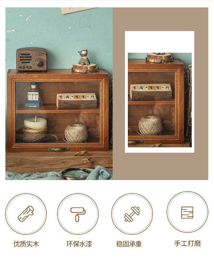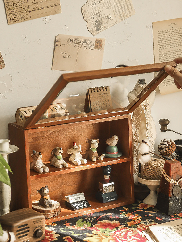 Настольная стеклянная коробка для хранения, чайный сервиз, косметический стенд, деревянная помада