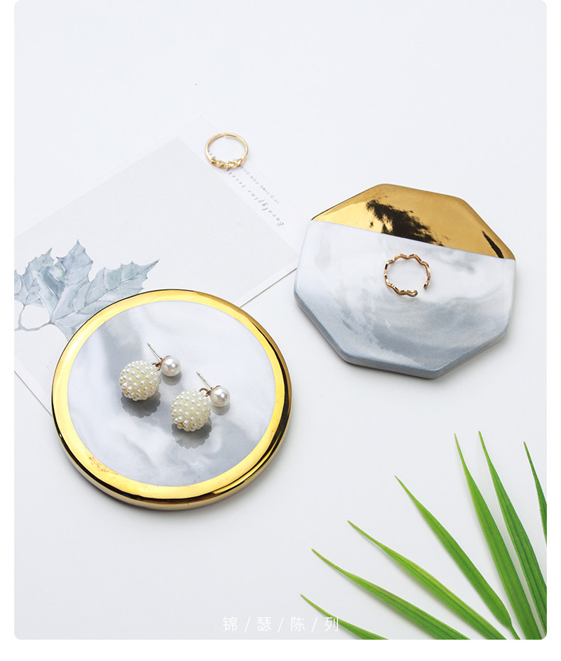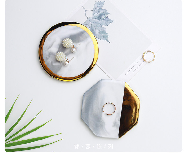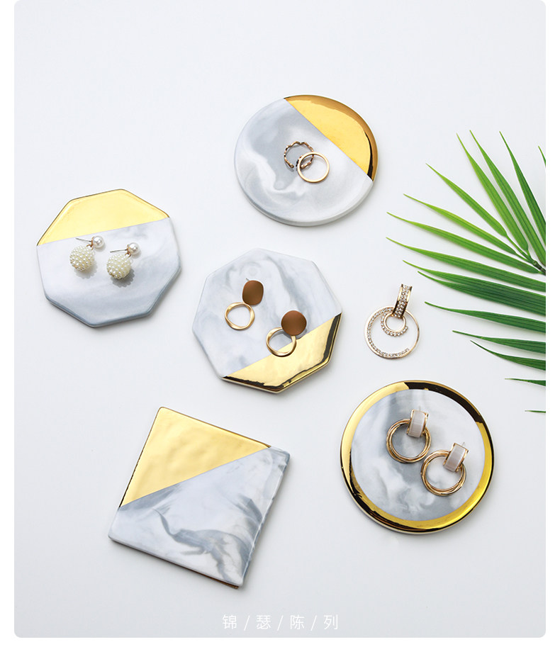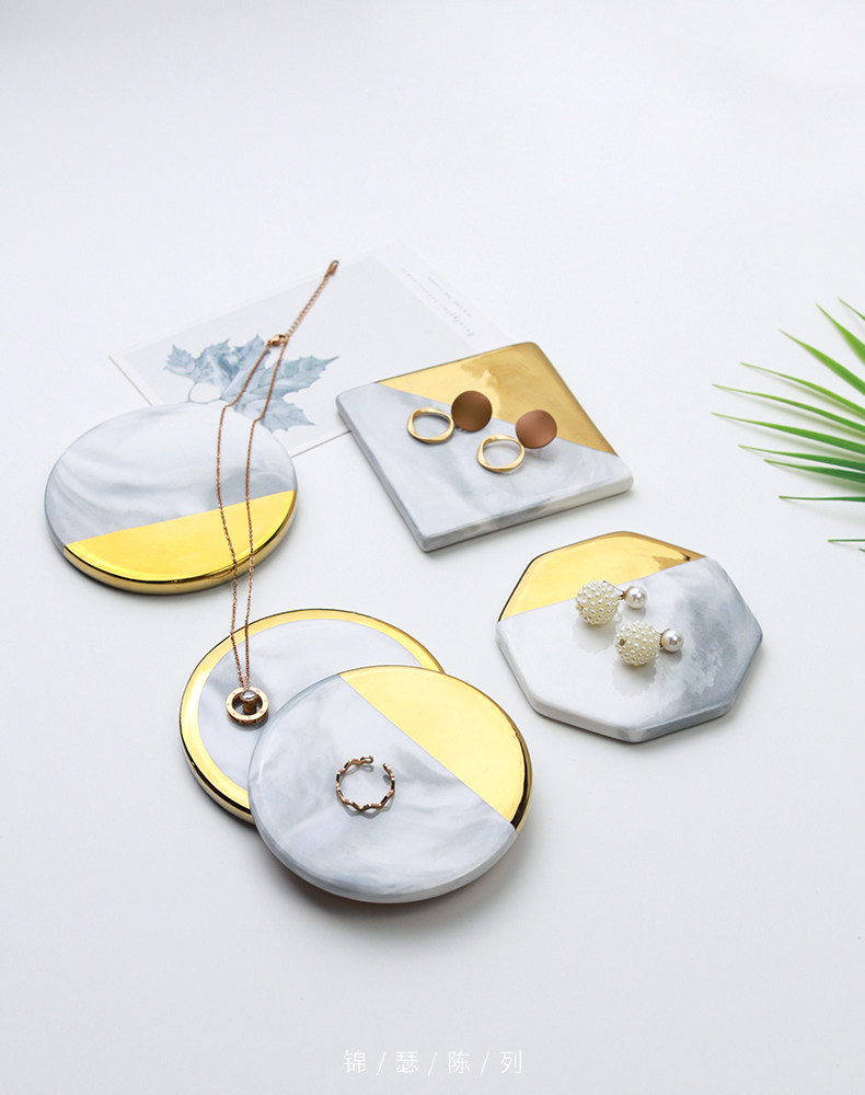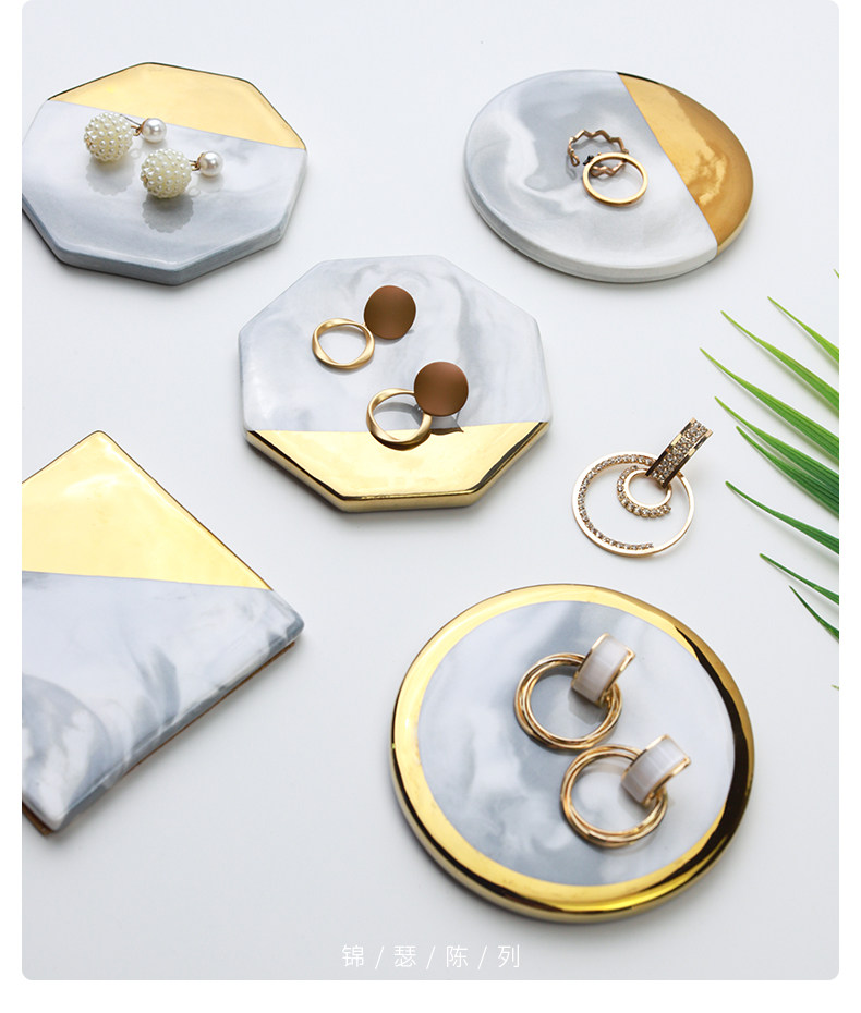 Jinse Display, скандинавский мраморный узор, керамическая подставка для ювелирных изделий с золотыми краями, креативная фотография, реквизит для демонстрации ювелирных изделий
