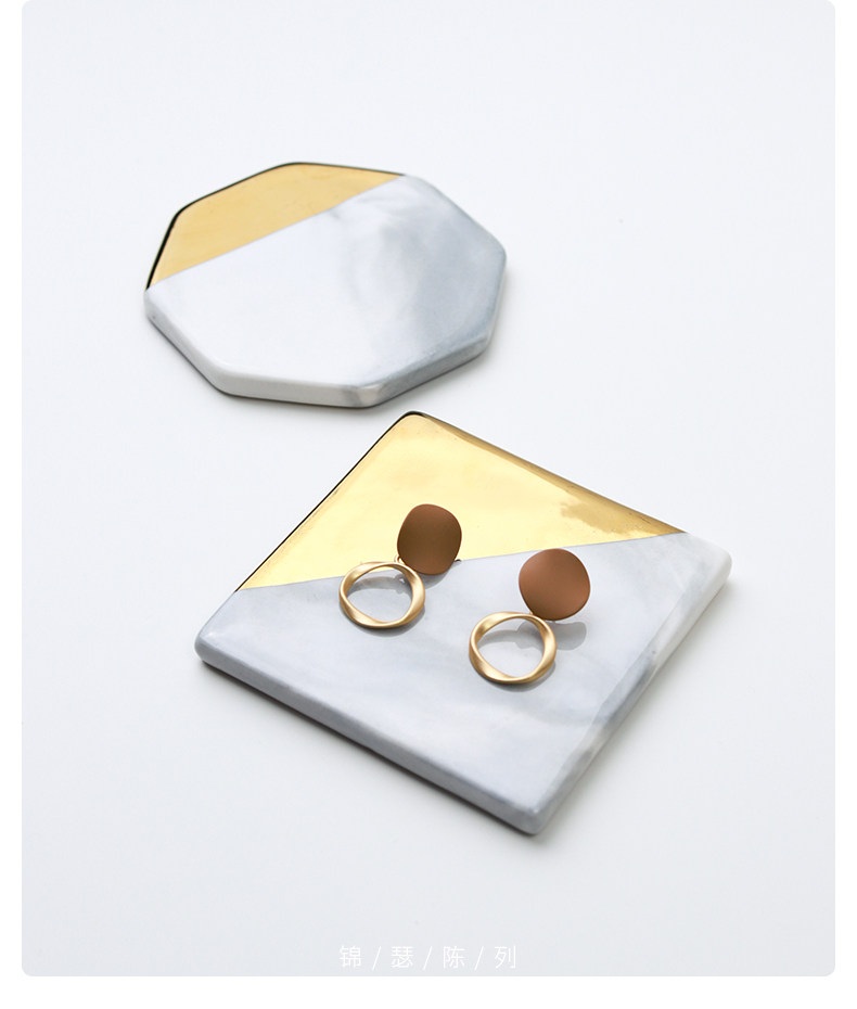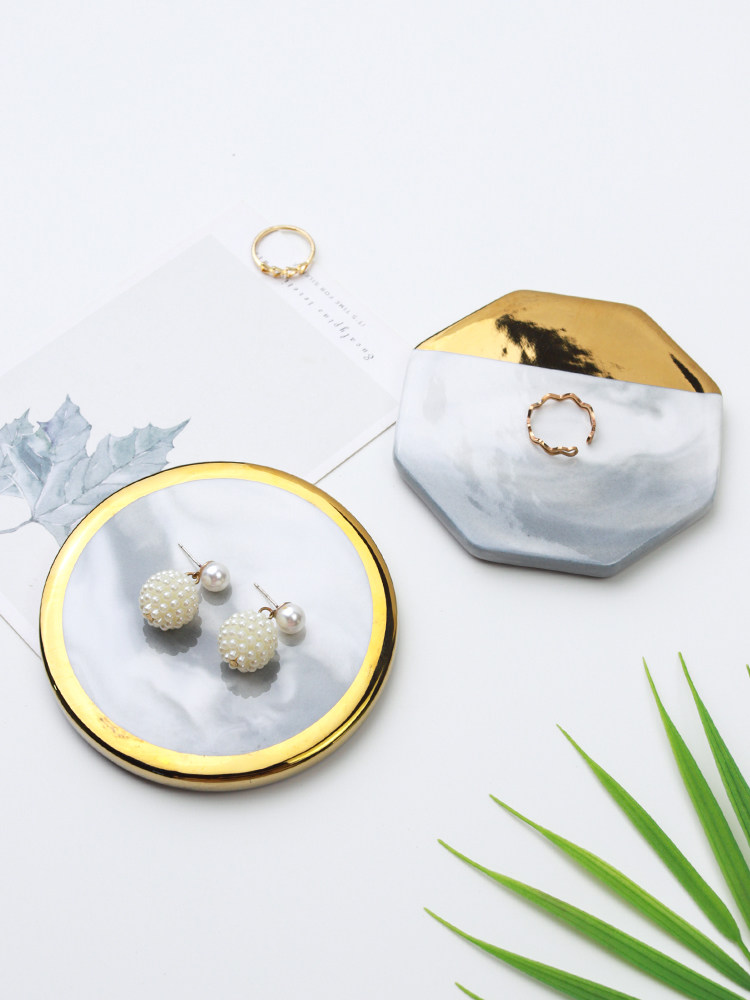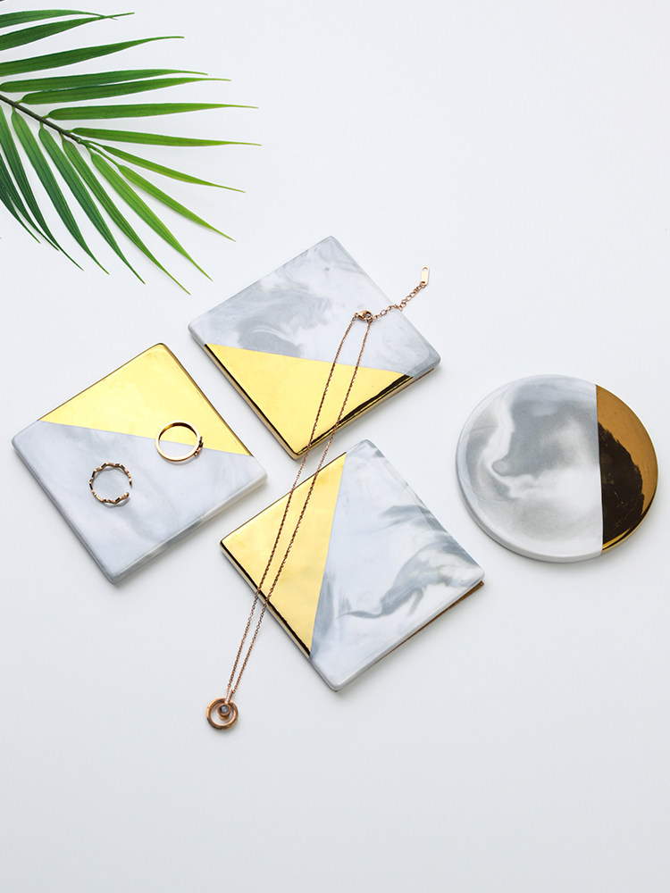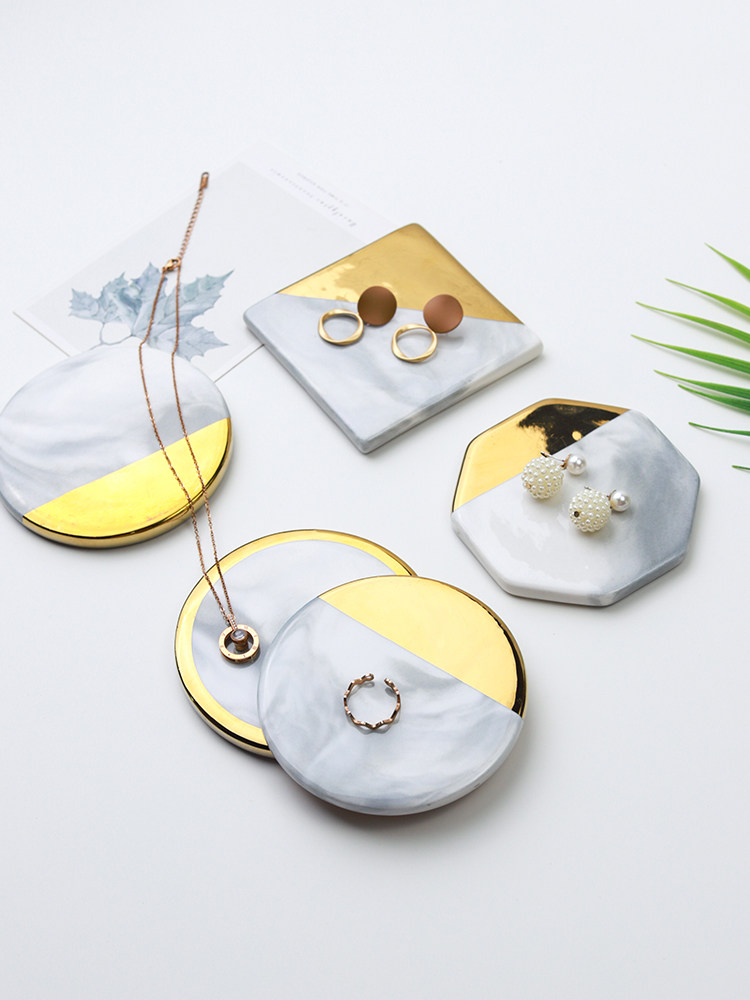 Jinse Display, скандинавский мраморный узор, керамическая подставка для ювелирных изделий с золотыми краями, креативная фотография, реквизит для демонстрации ювелирных изделий