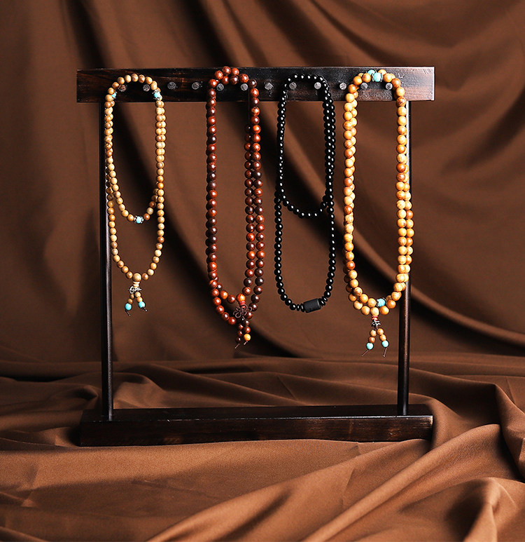 Персиковое ожерелье, деревянный стенд, подвеска, браслет, четки из круглых бусин из грецкого ореха, ретро аксессуар, система хранения