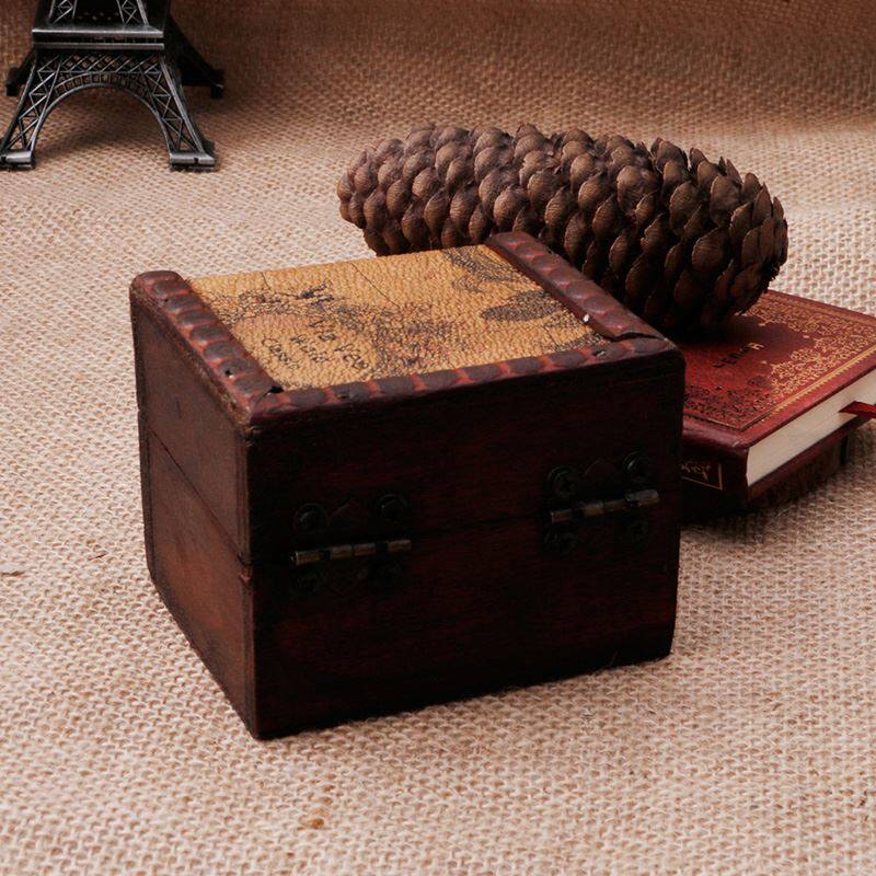 Винтажная деревянная карта коробка для хранения шкала ювелирных запонок CHES