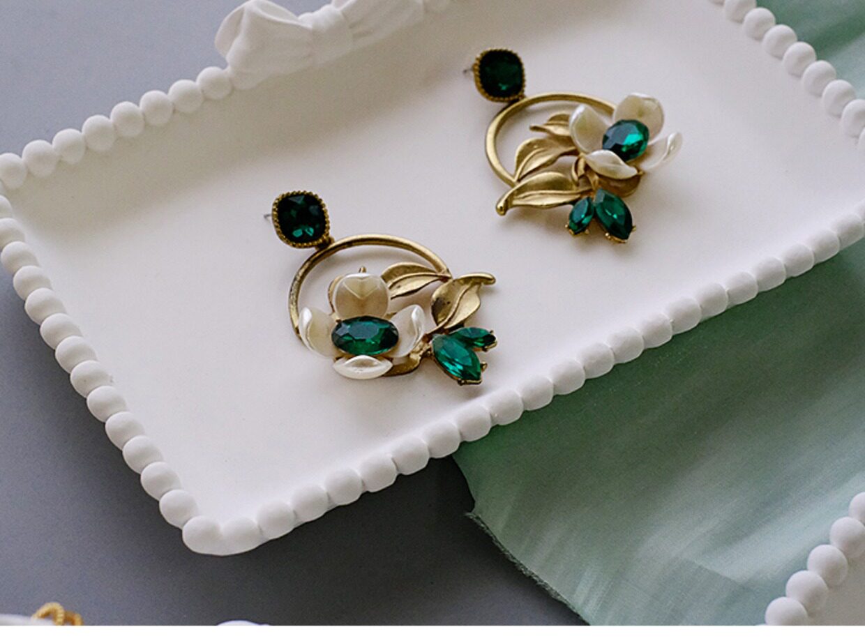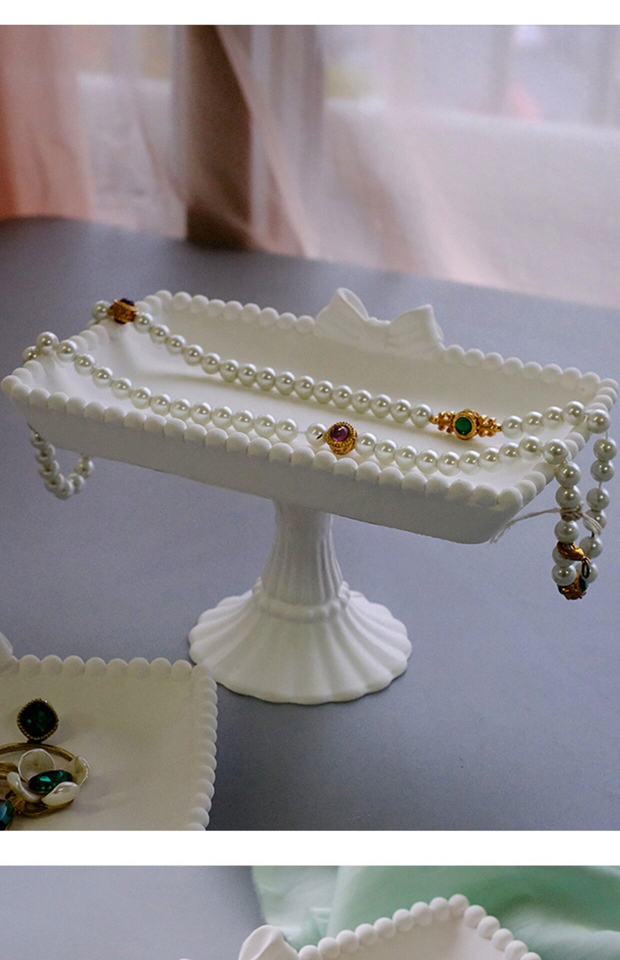 Ювелирное украшение, белый стенд с бантиком, серьги, хранилище
