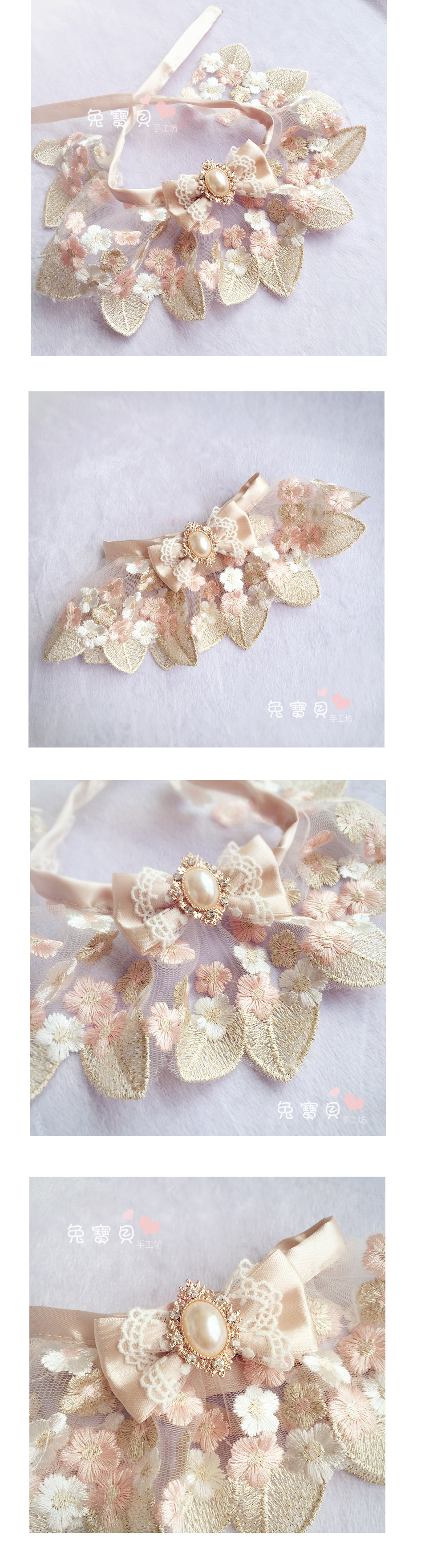 Оригинальный шарф ручной работы с бантиком, нагрудник, чокер, делается под заказ, цвета шампанского