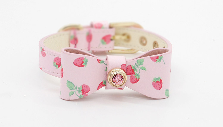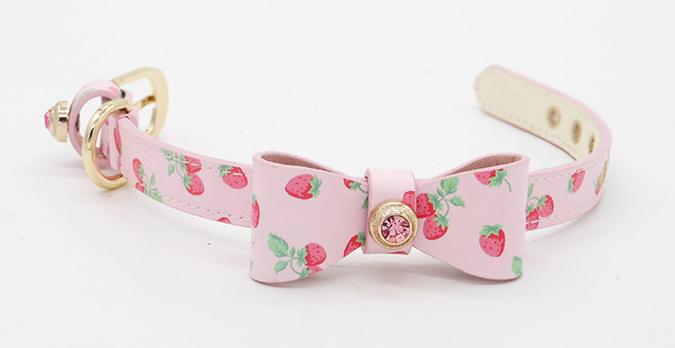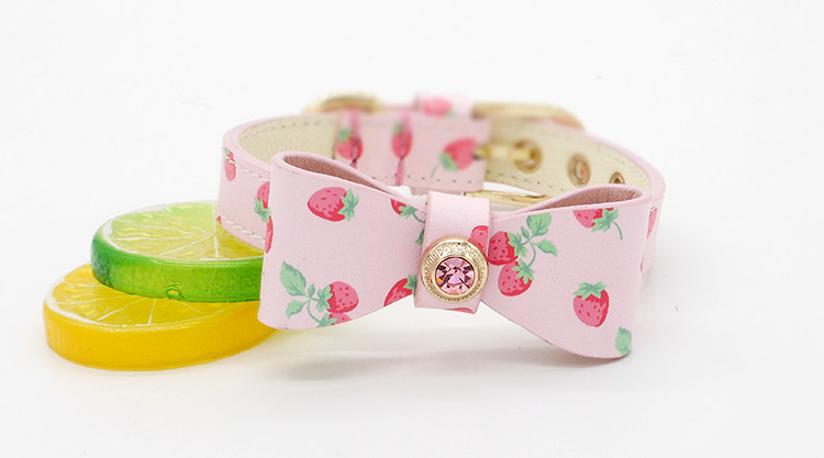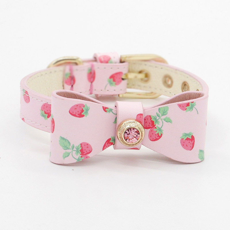 Клубника с бантиком, чокер, из натуральной кожи, домашний питомец