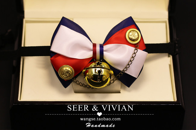 Военно-морская галстук-бабочка ручной работы, колокольчик с бантиком, чокер, аксессуар, домашний питомец, кошки и собаки, кот