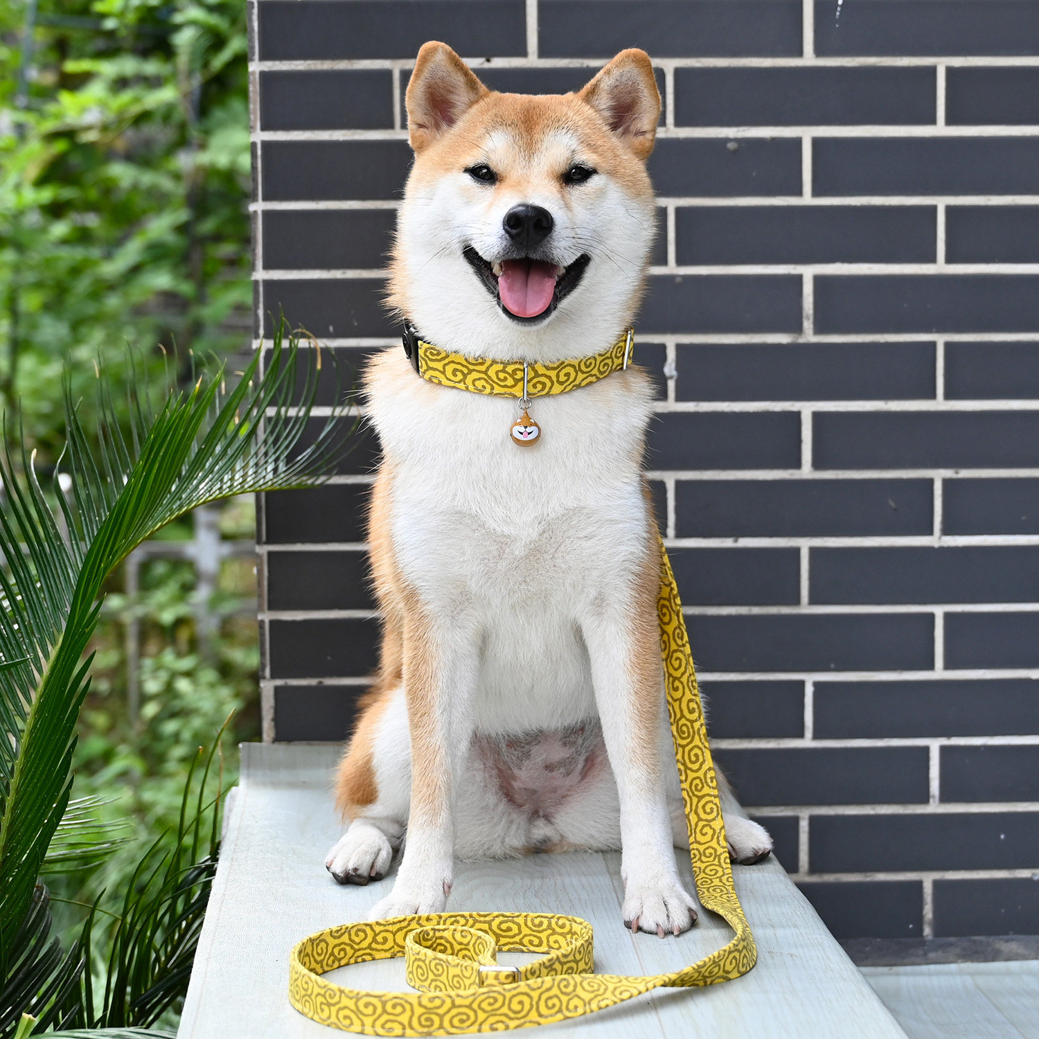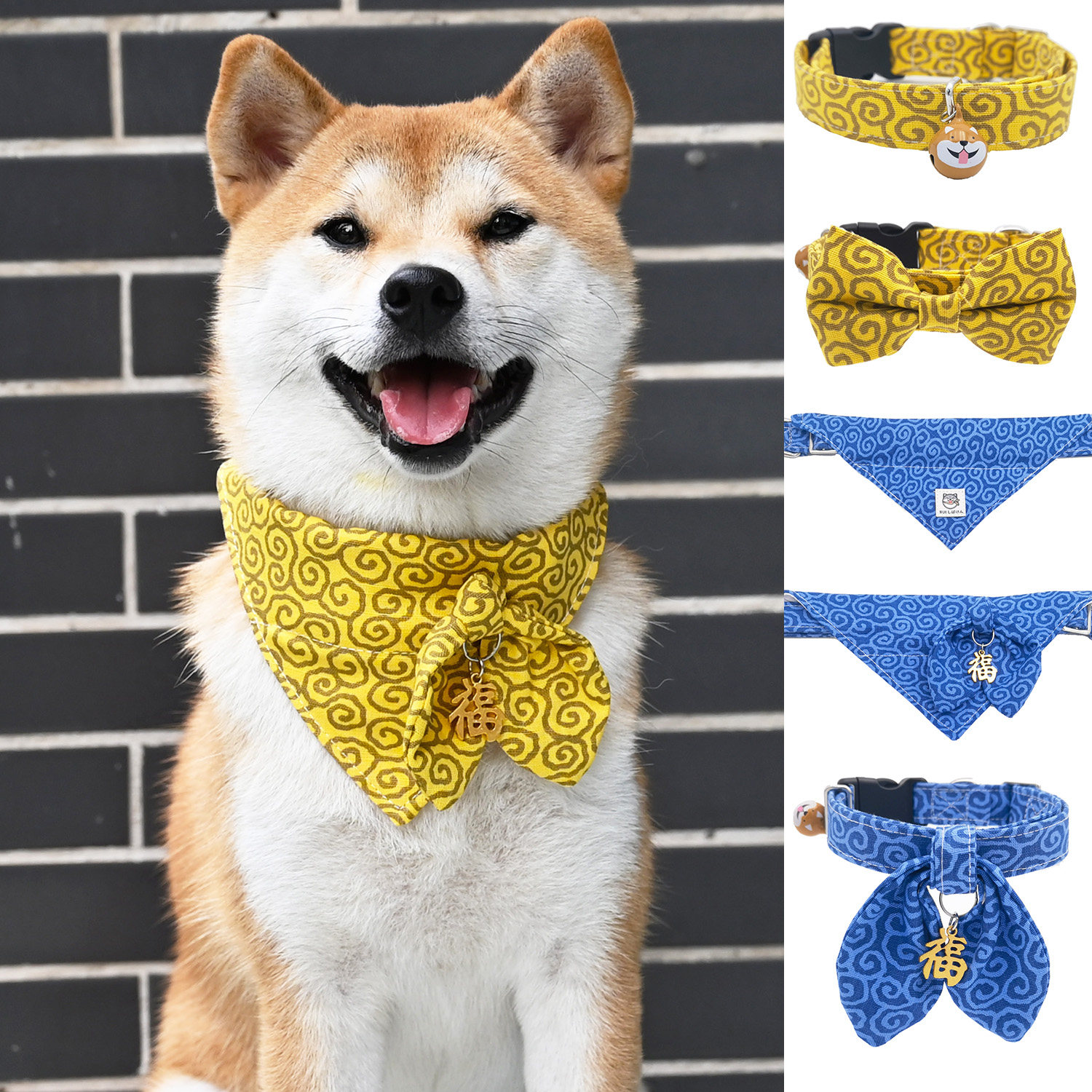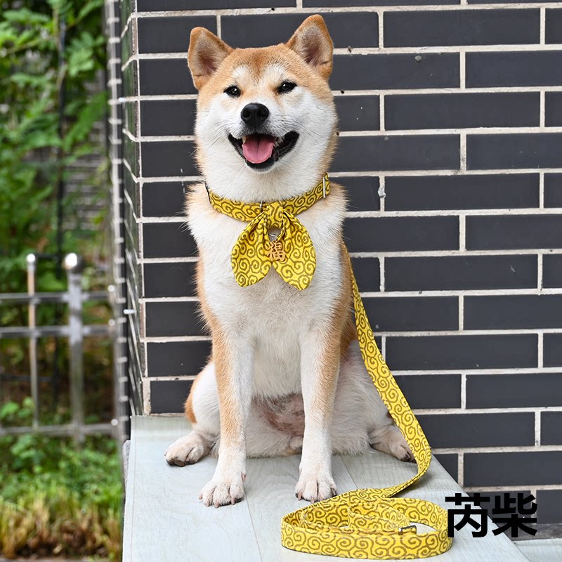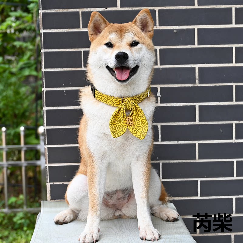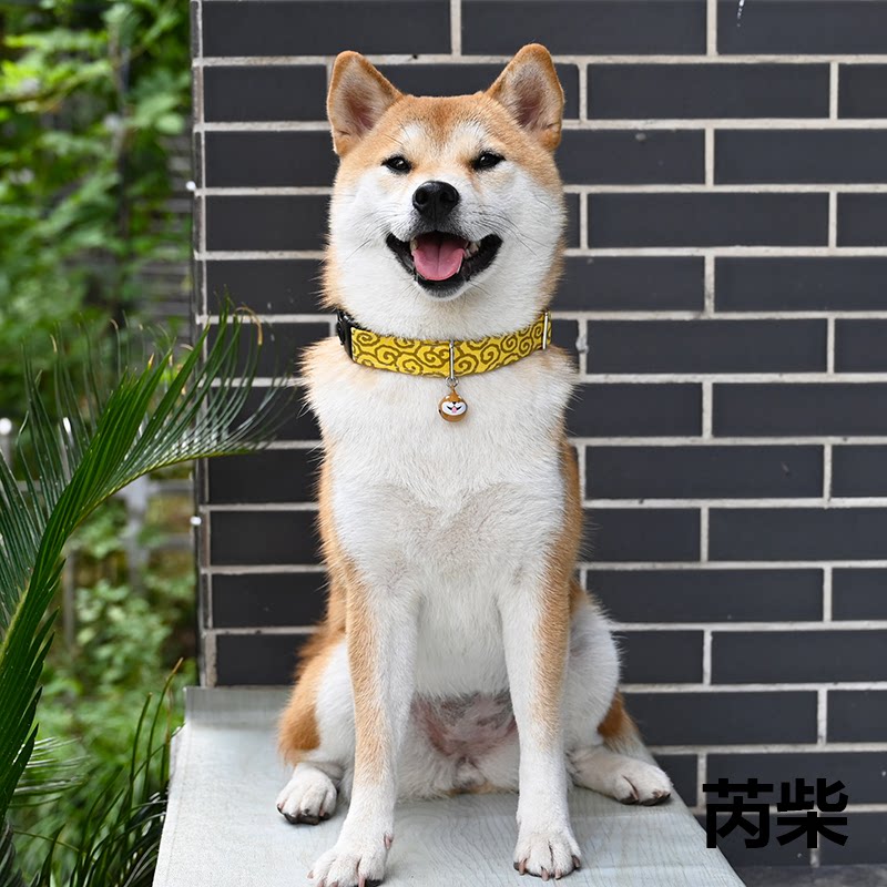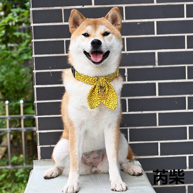 /Rui chai Limited/Желтая трава трава, узор японского стиля, ошейник, круговые круги, треугольник треугольный голый шиба ину