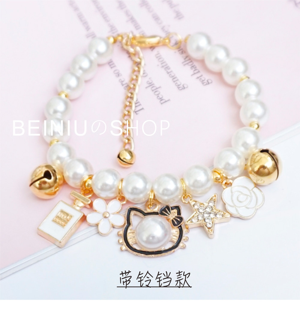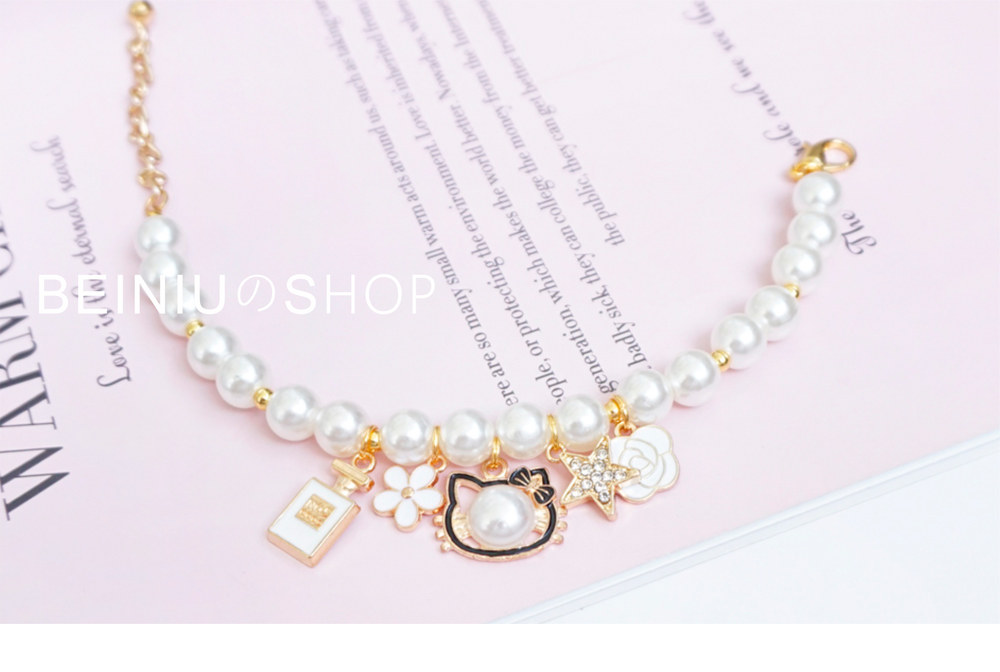 Мультяшный колокольчик из жемчуга, ожерелье, свежий чокер в форме цветка, домашний питомец, кот