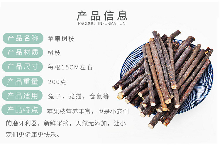 Rabbit Molars Apple Branches 200g Totona Litg