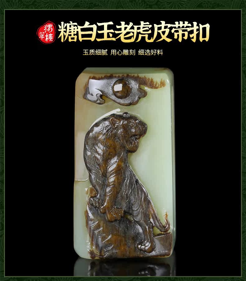 独翠楼 Ремень из белого нефрита, пряжка, мужской стиль