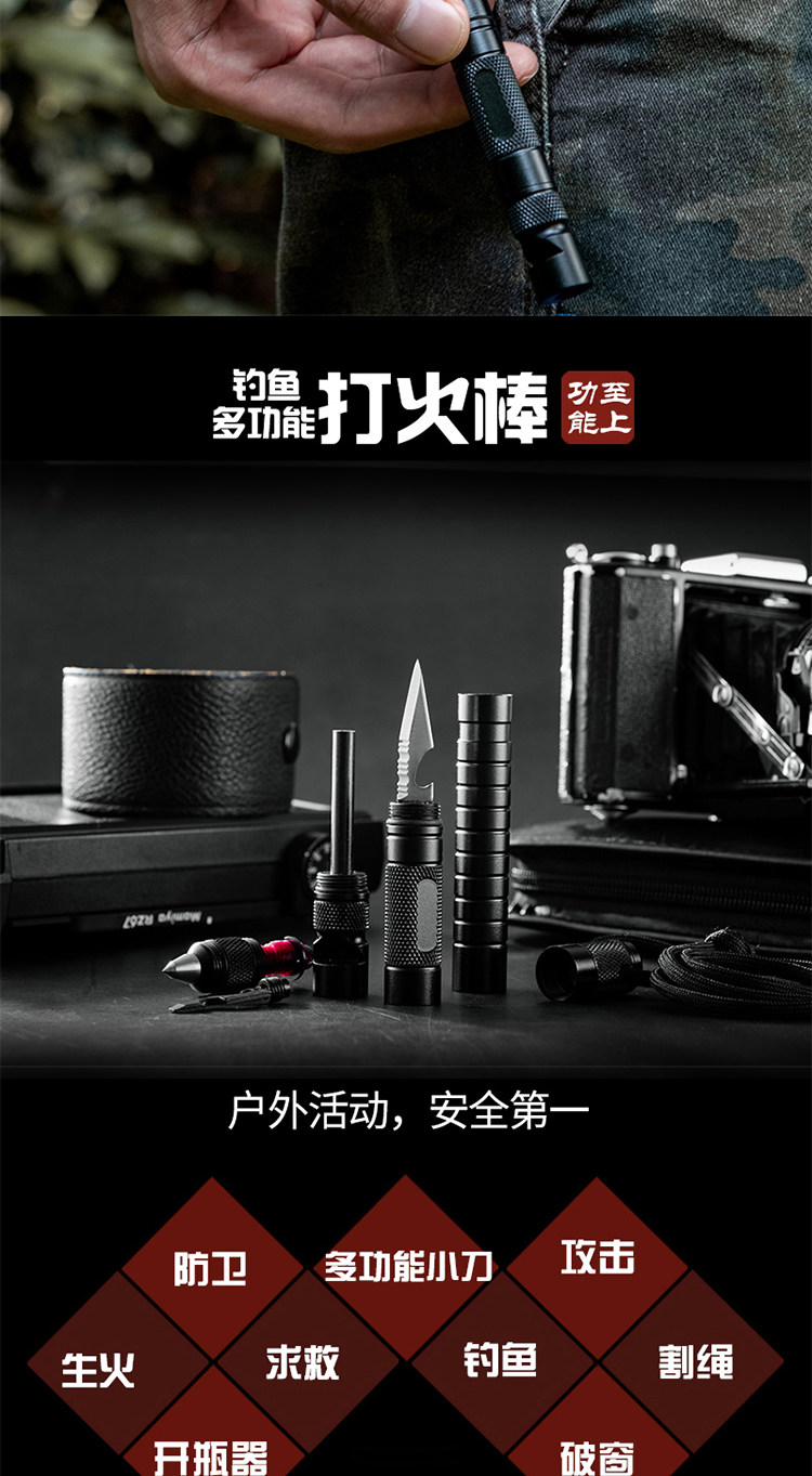 Зажигалка, универсальное дорожное снаряжение, тактический нож, свисток
