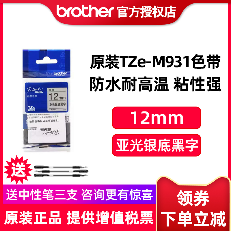 Этикетка Brother TZ-M931 с матовым серебристым фоном толщиной 12 мм и черным текстом PT-1280 PT-7600 PT-18RZ