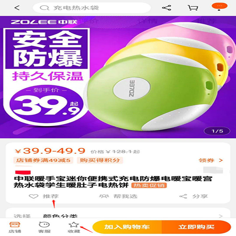 Zhonglian поднять бао шесть -летний магазин пять цветов теплой бутылки с водой теплое сокровище тепло