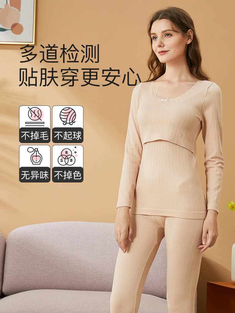 Термобелье, хлопковые штаны, бархатное удерживающее тепло нижнее белье для кормящих грудью, демисезонная пижама