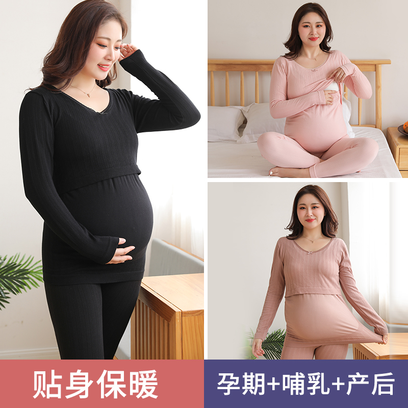 Термобелье, послеродовые зимние штаны, удерживающее тепло нижнее белье для кормящих грудью для беременных, хлопковая пижама, большой размер