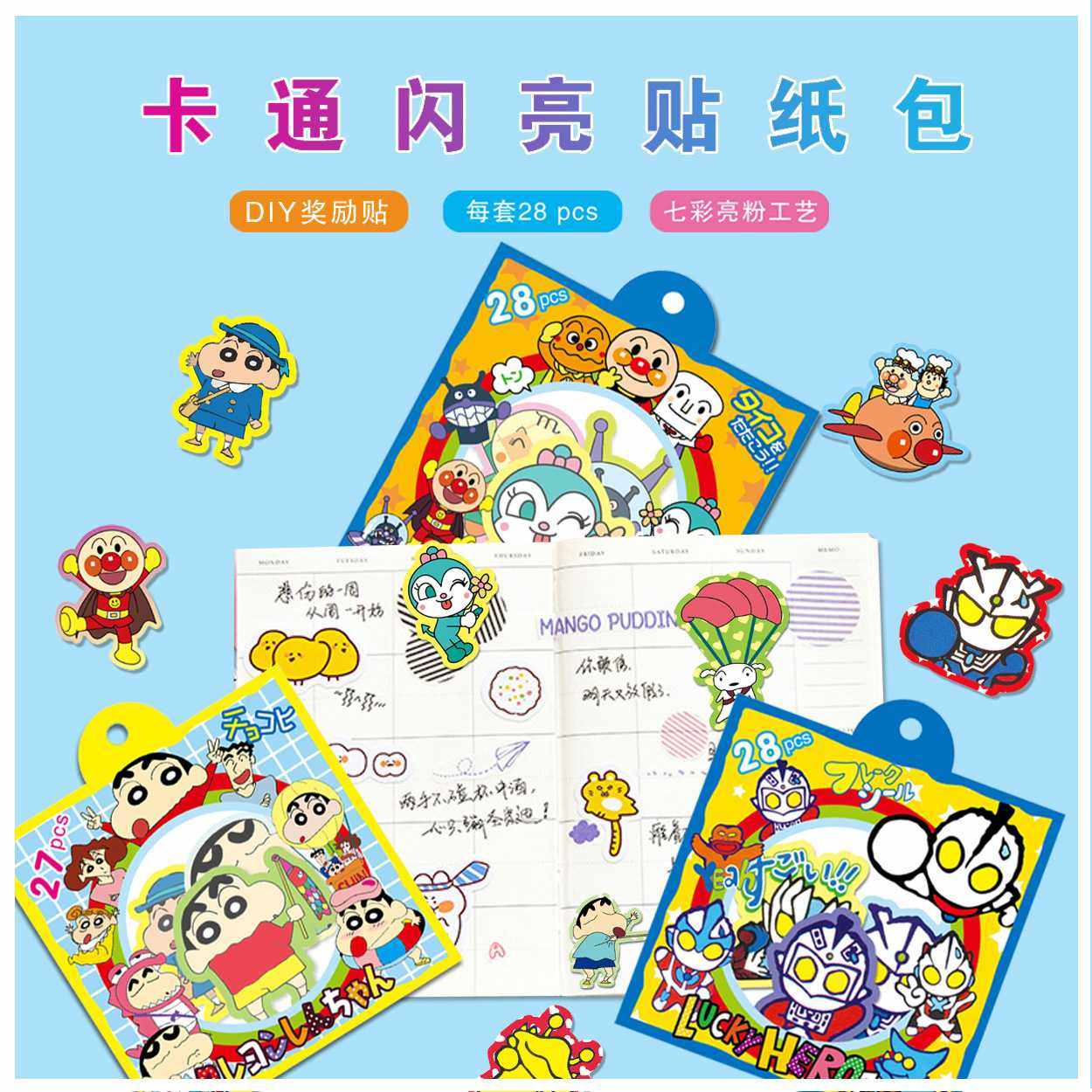 Мелки, салфетка для лица, милая наклейка, Анпанман, 28 штук в упаковке