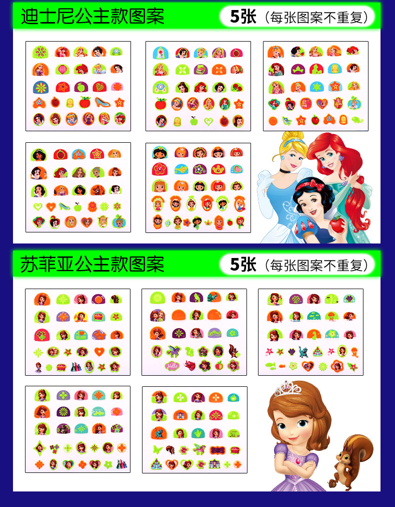Дисней, детские наклейки на ногти, накладные ногти для принцессы, флуоресцентные детские тату наклейки, наклейки для ногтей