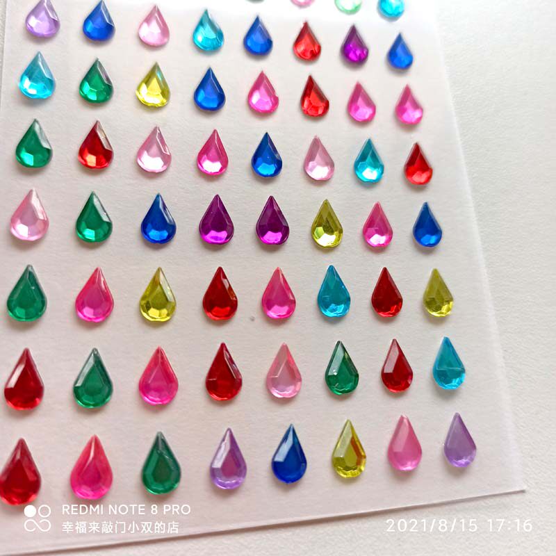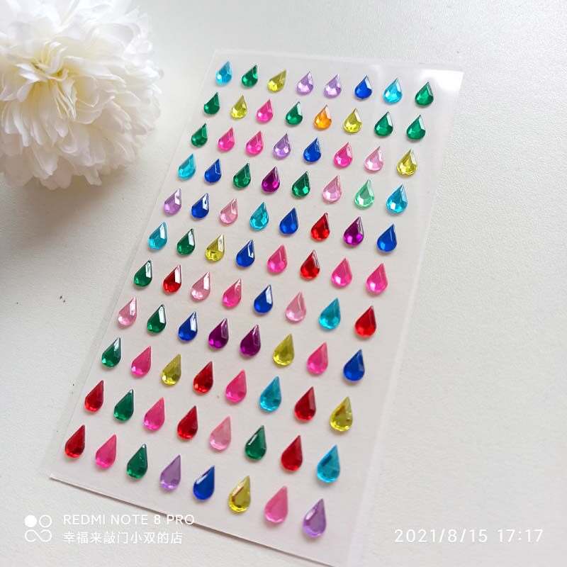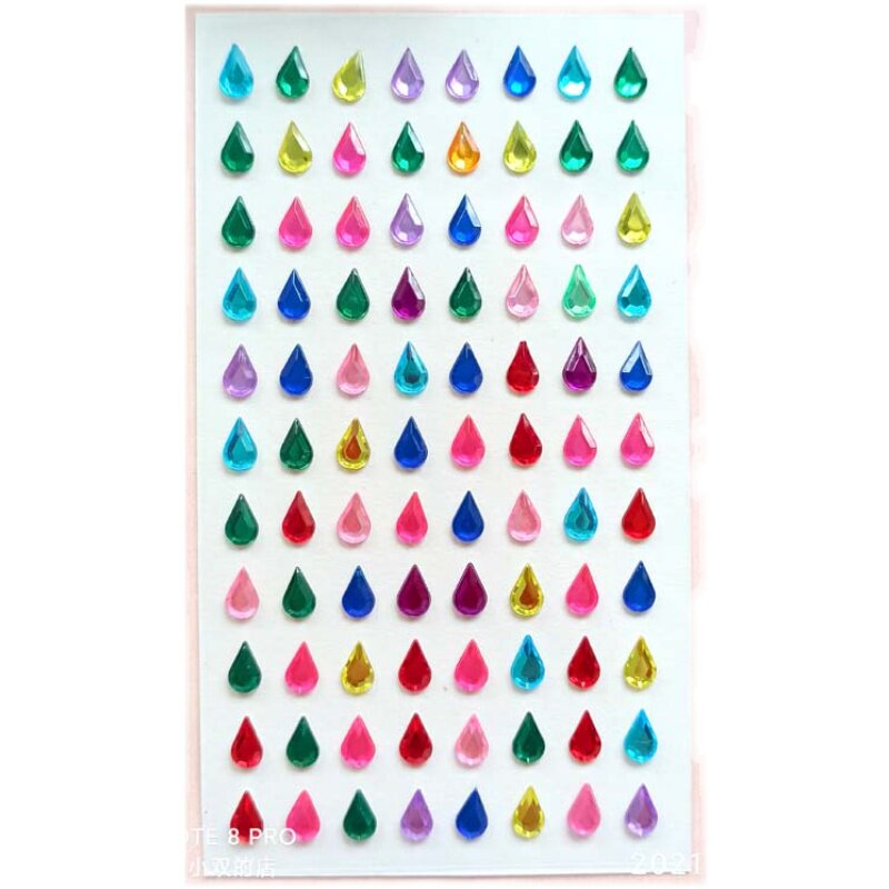 Многоцветная акриловая клейкая самоклеющаяся наклейка в форме капли для лица, с драгоценным камнем, 88 шт