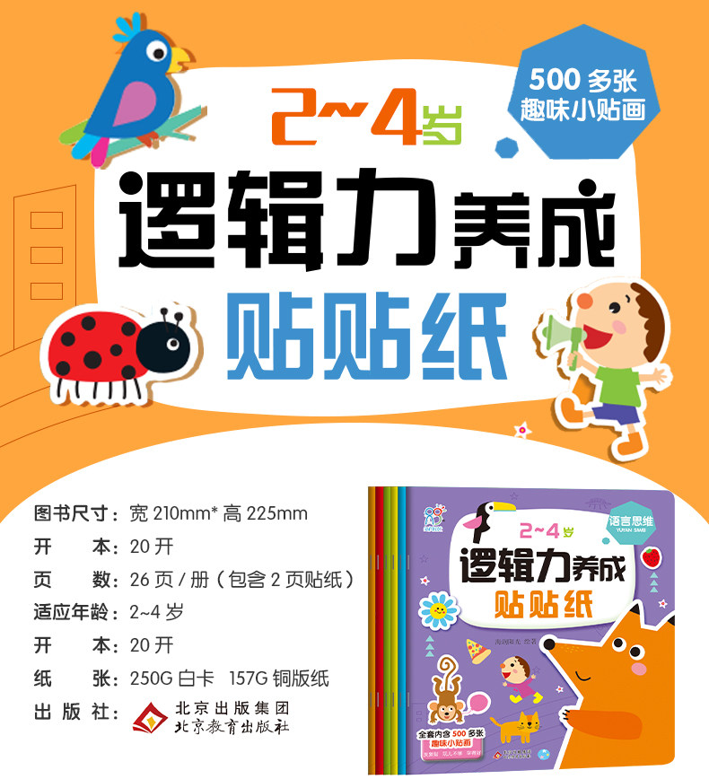 海润阳光 Детская логическая наклейка, мультяшная познавательная карта для детского сада, раннее развитие, 2-4 лет, обучение