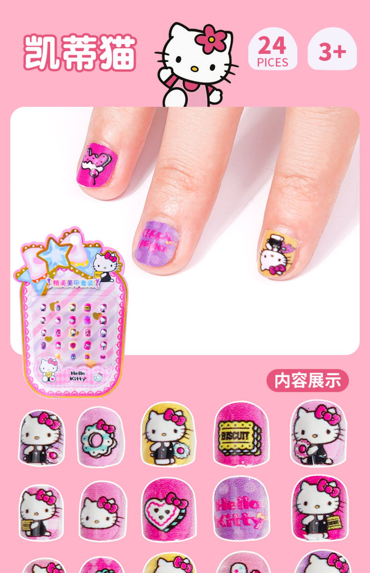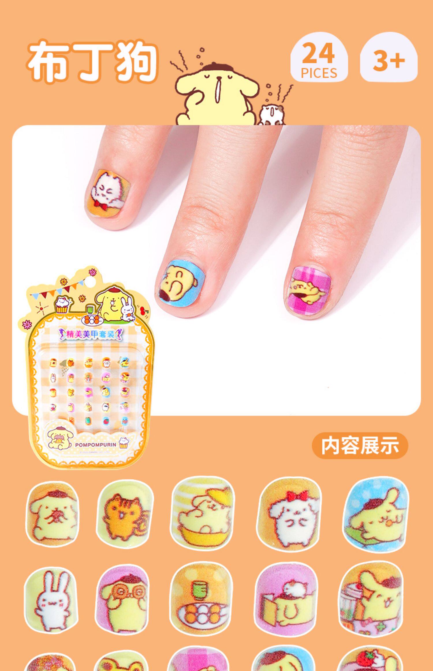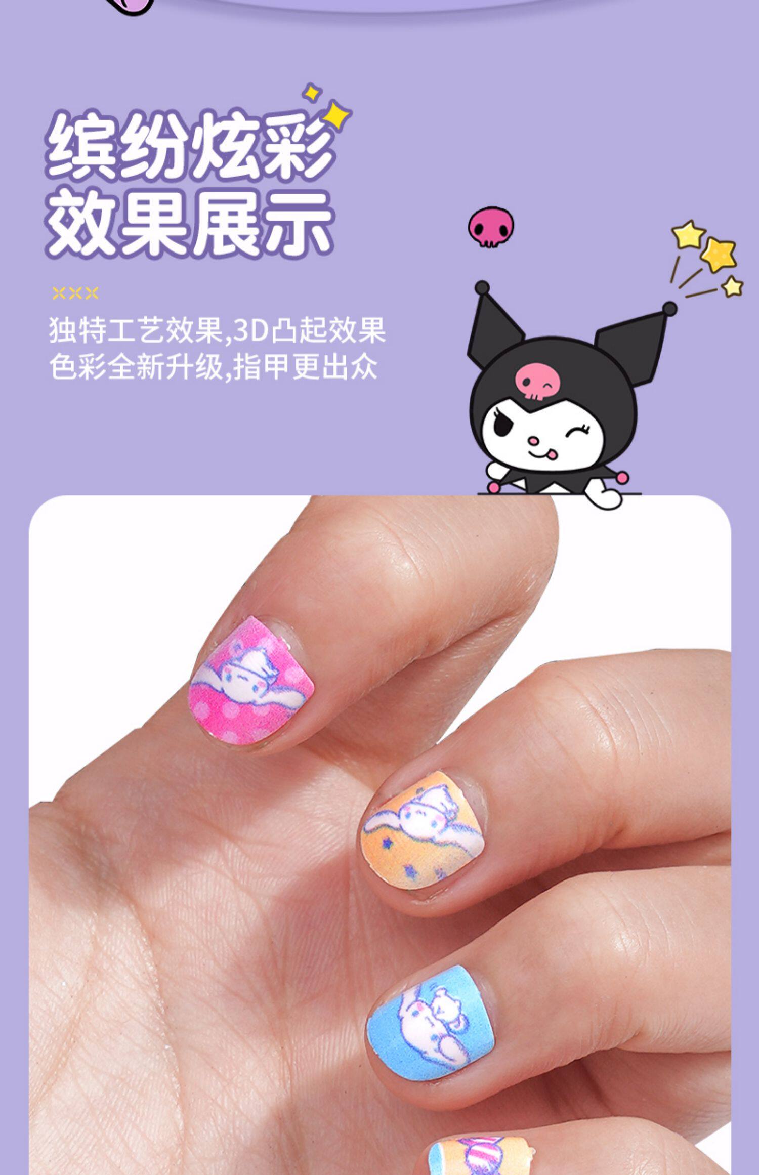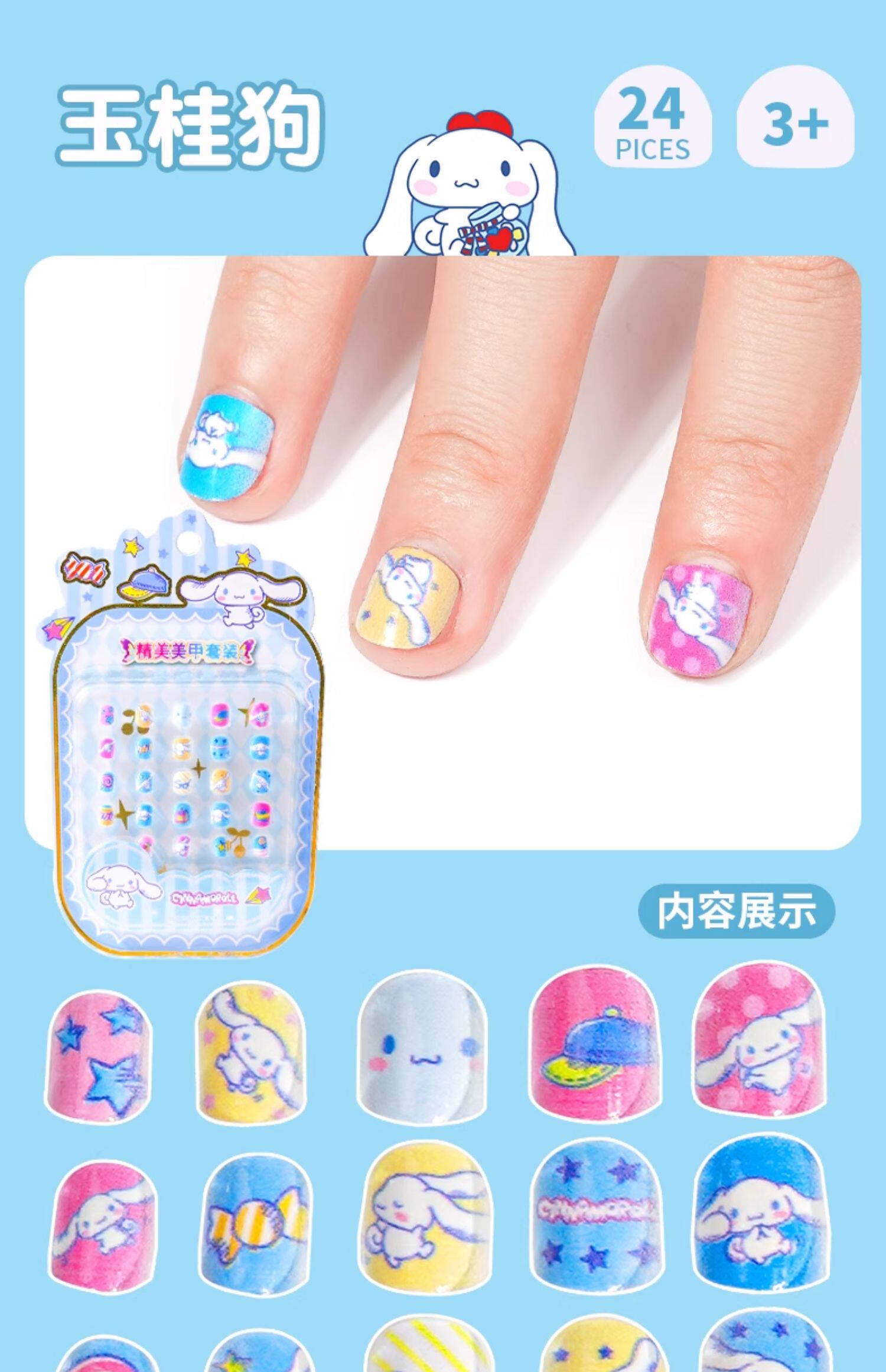 Детские наклейки на ногти, нетоксичные накладные ногти без запаха для принцессы, мультяшные детские наклейки для ногтей