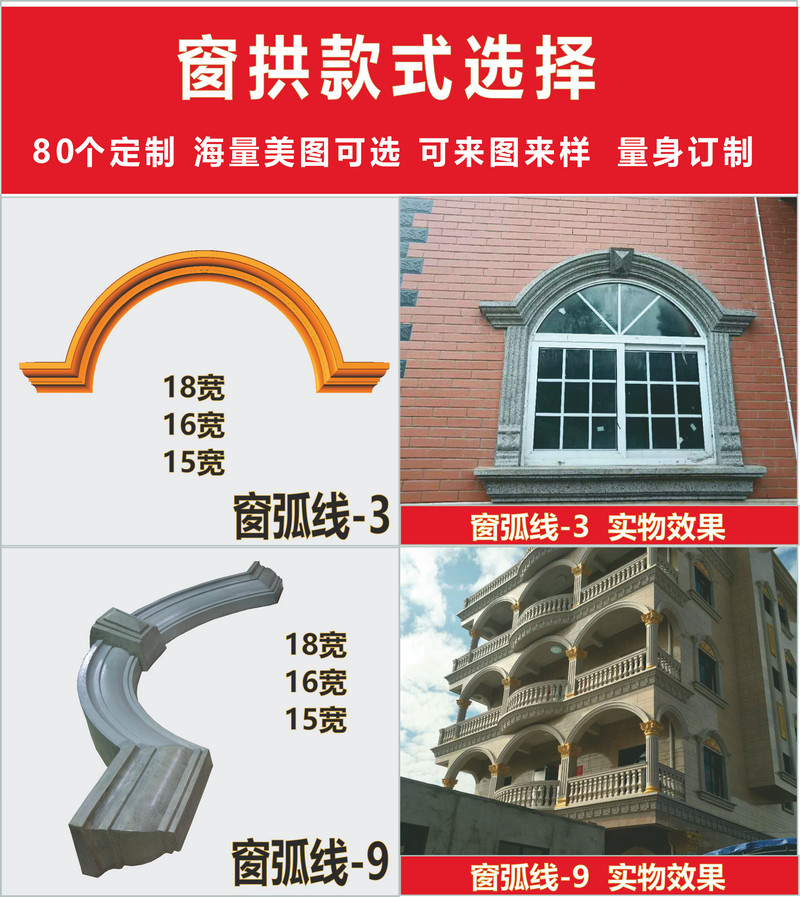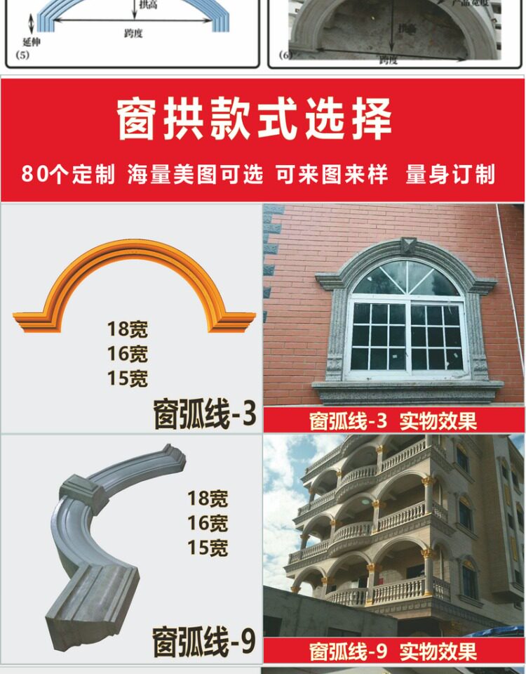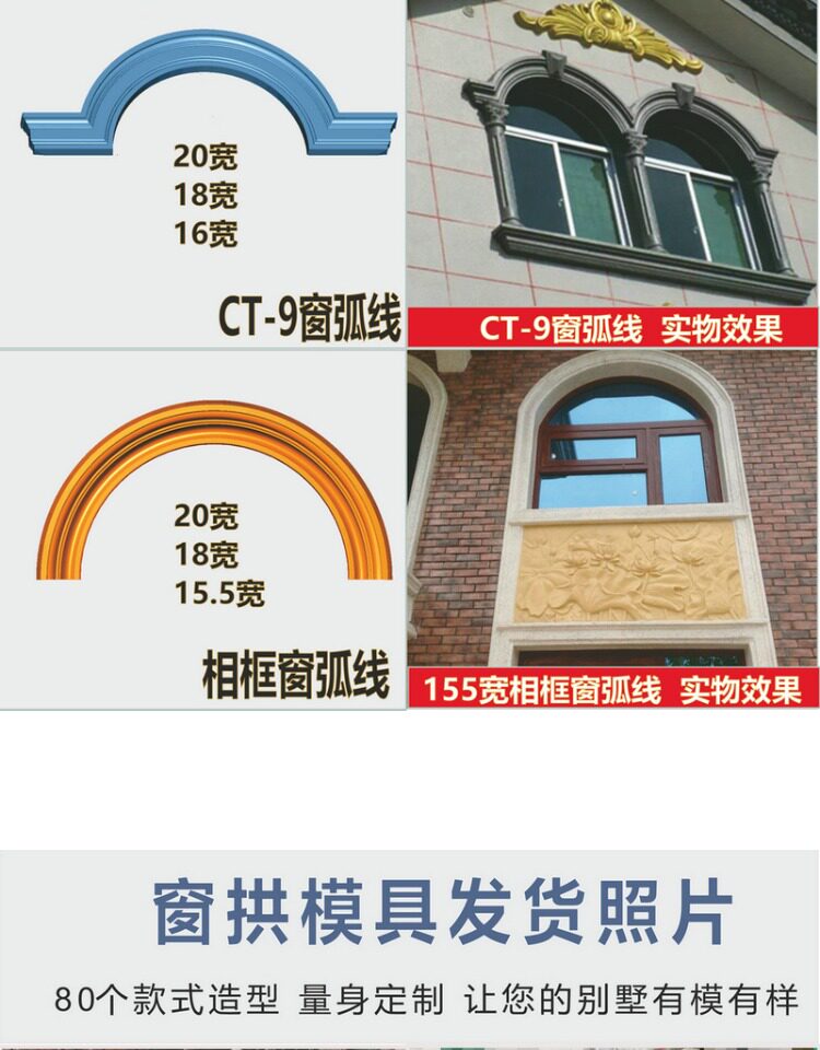 Окно арочная плесень арочная крышка окна Полу циркулярного римско -цифрового изогнутого окна модель пользовательская вилла европейская цементная цементная