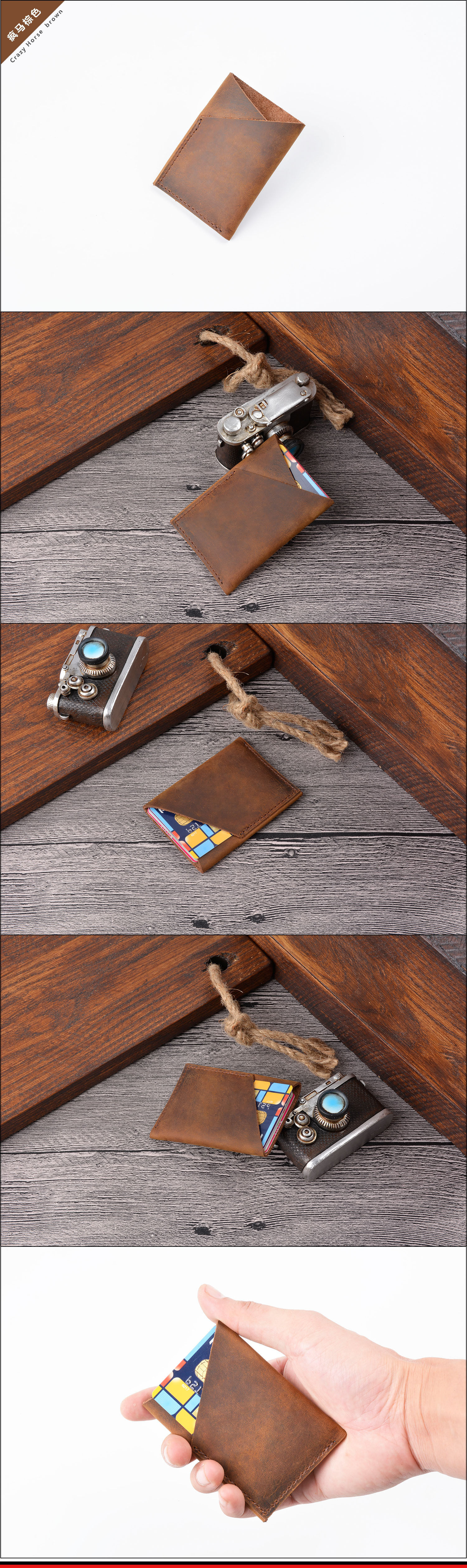 Изменение популярности, заголовок ручной работы в ретро, Cowbon Male Crazy Horse Skin Mini, простой набор держателей карт личности
