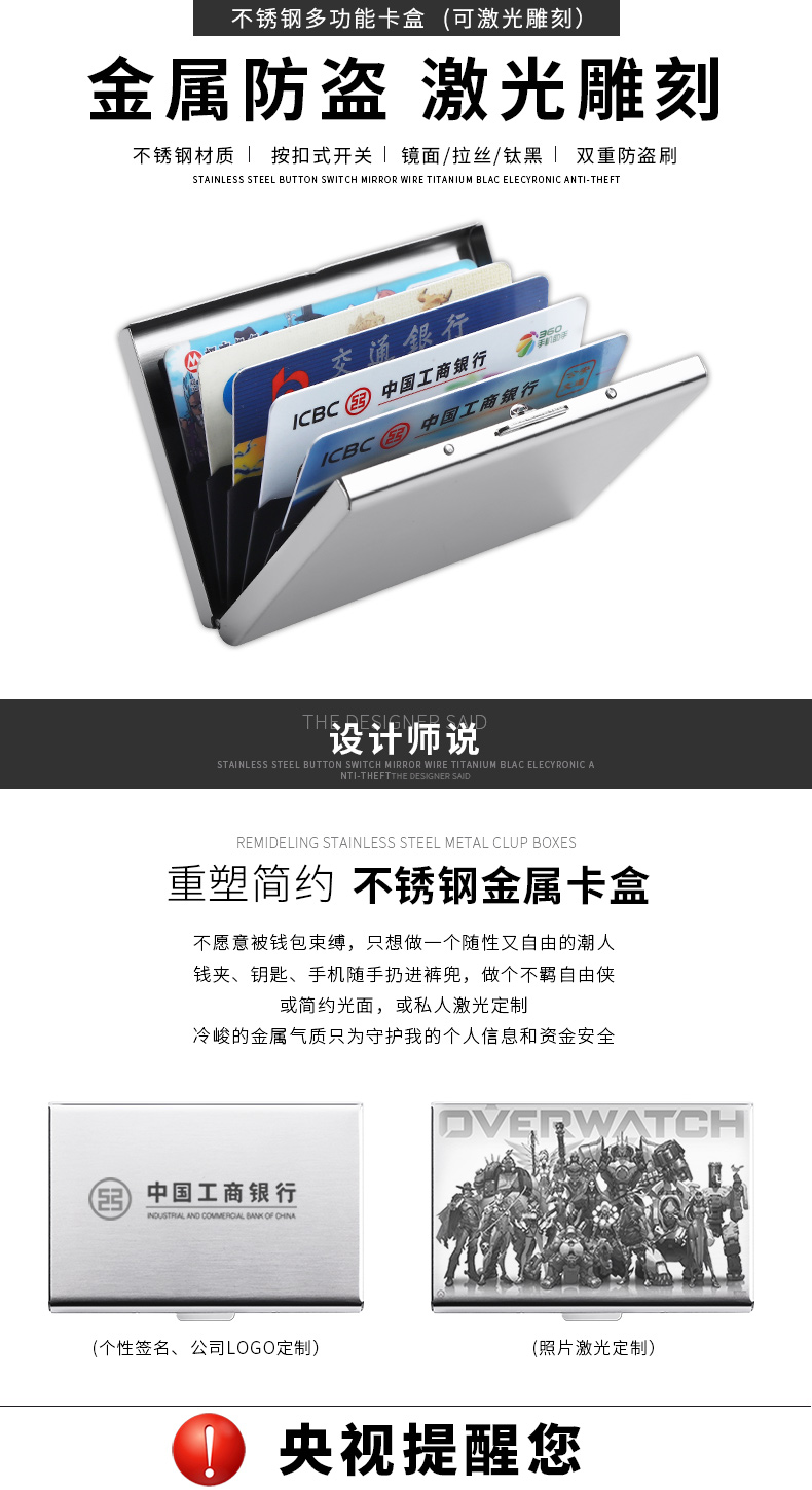 Мужской металлический ультратонкий картхолдер из нержавеющей стали, антимагнитный комплект, анти-кража