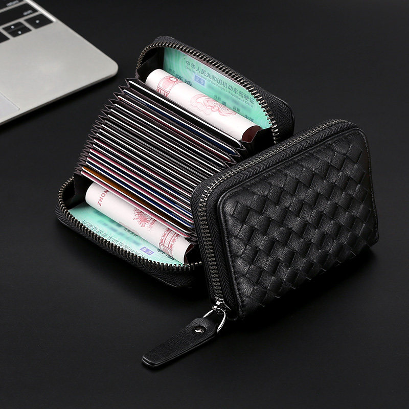 Картхолдер, сумка через плечо, плетеный антимагнитный кошелек, вместительная и большая защитная сумка, карточки, из натуральной кожи
