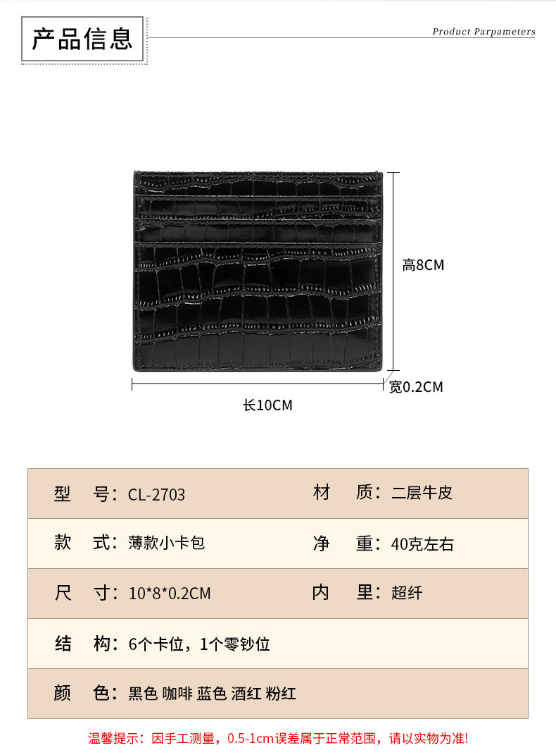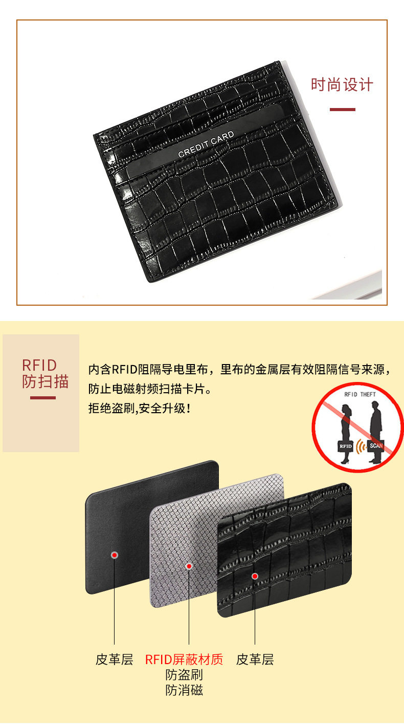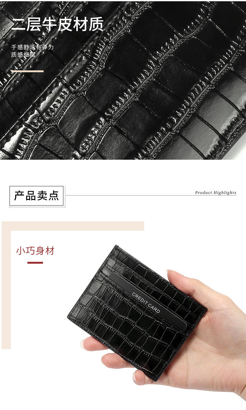 Ультратонкий маленький антимагнитный картхолдер подходит для мужчин и женщин, из натуральной кожи, крокодиловый принт