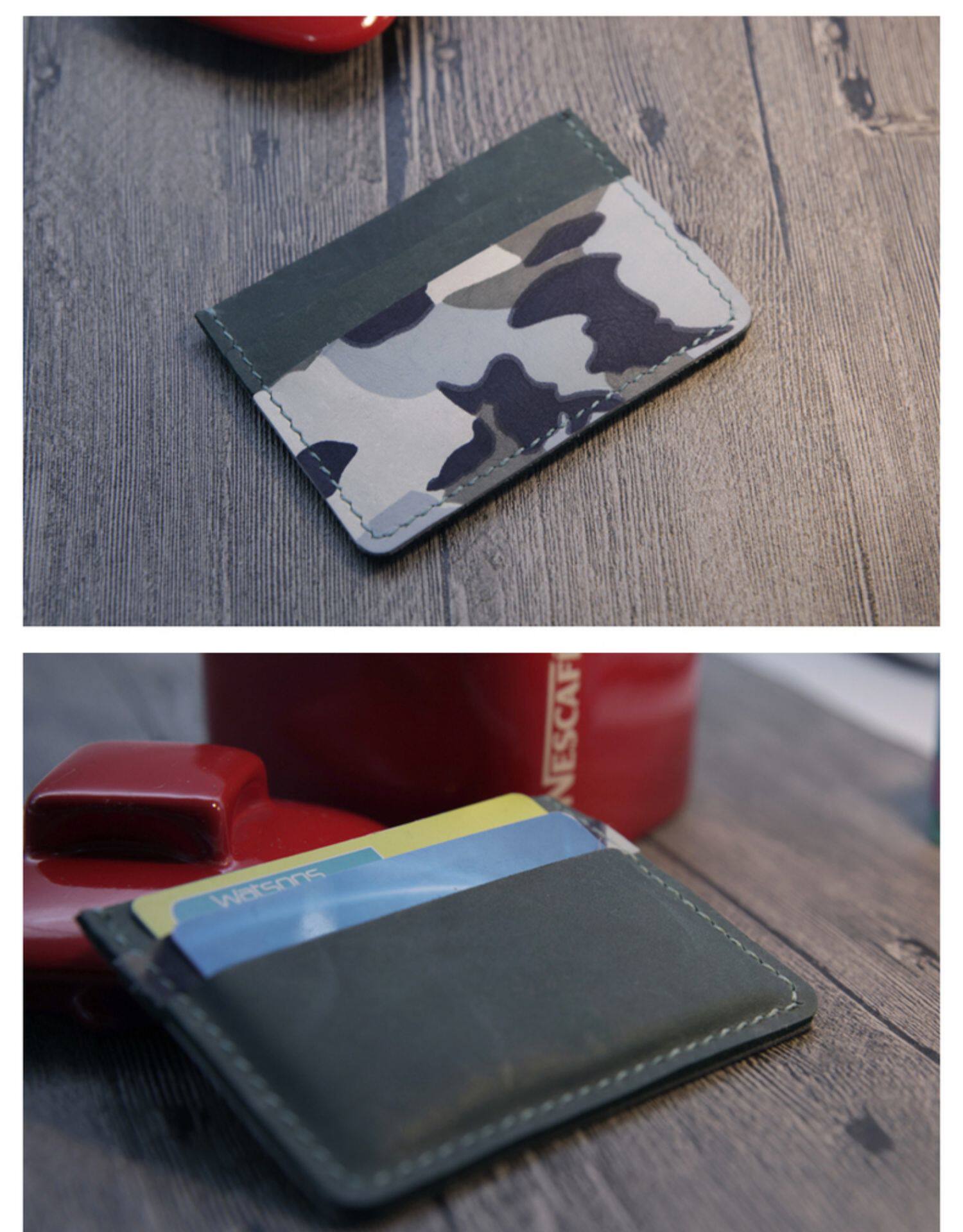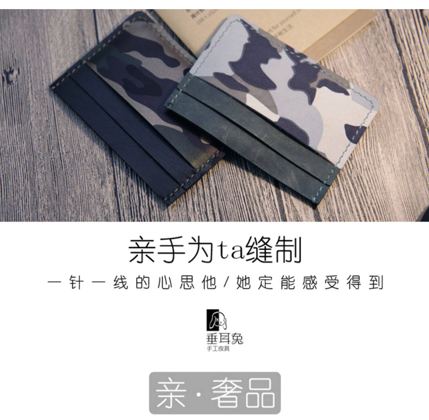 Картхолдер, маленький кожаный набор материалов, двусторонная камуфляжная медная небольшая сумка с гравюрой, DIY, японские и корейские
