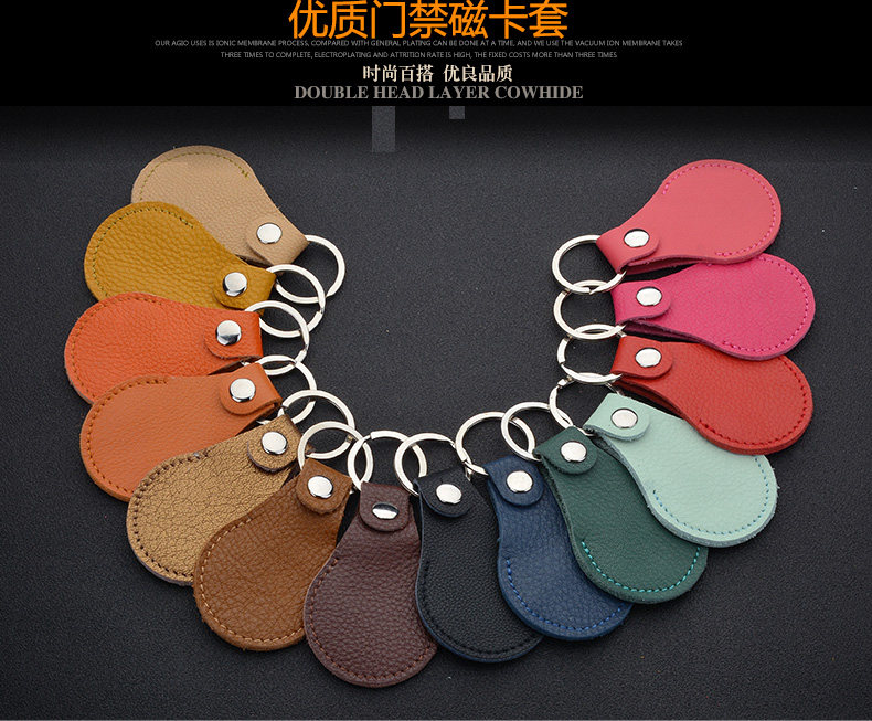 Маленький индукционный картхолдер в форме капли подходит для мужчин и женщин, универсальный кожаный брелок, для брелока контроля доступа, из натуральной кожи
