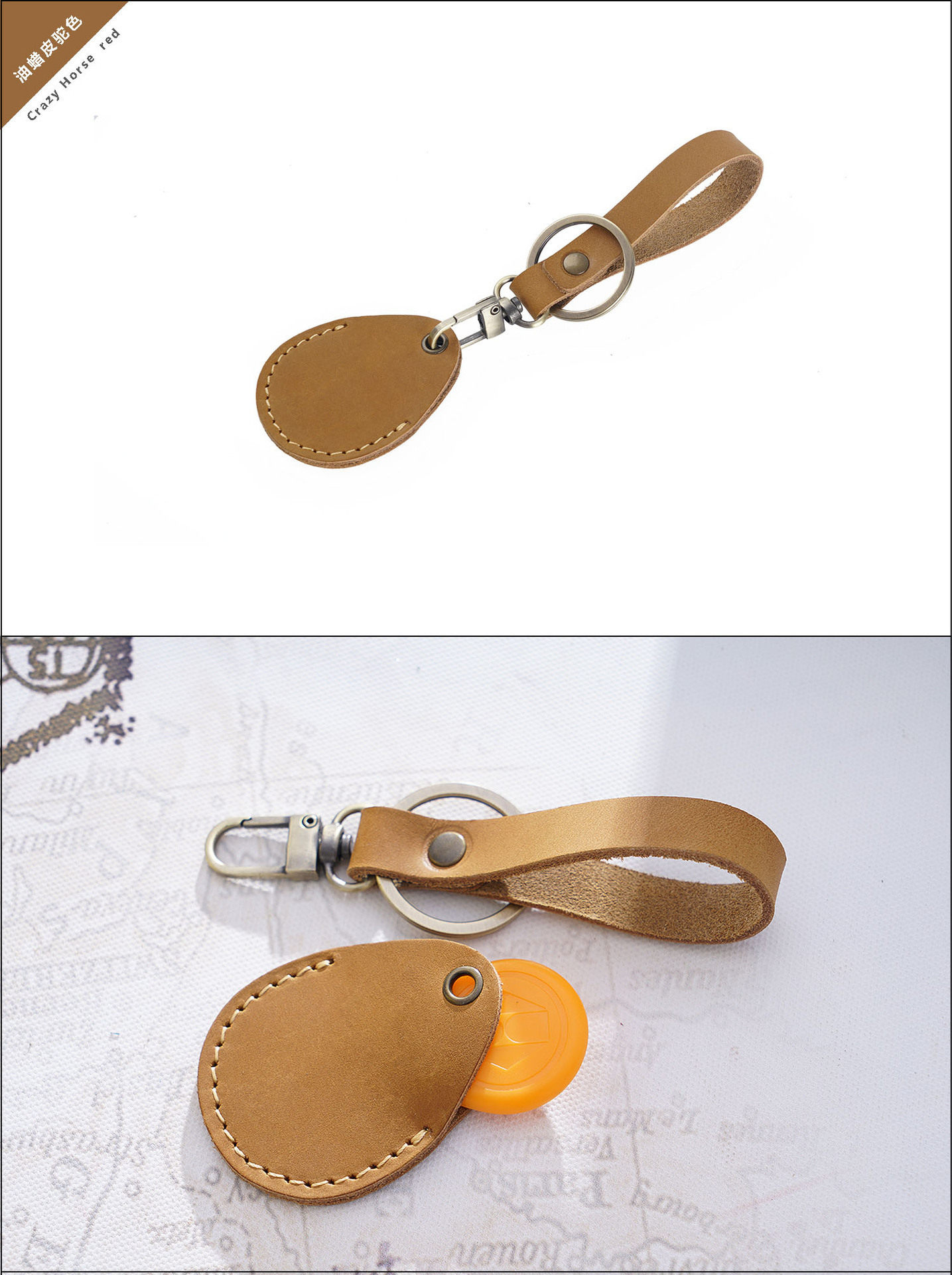 Кожаный маленький картхолдер, индукционный защитный чехол в форме капли, брелок, воловья кожа, из натуральной кожи