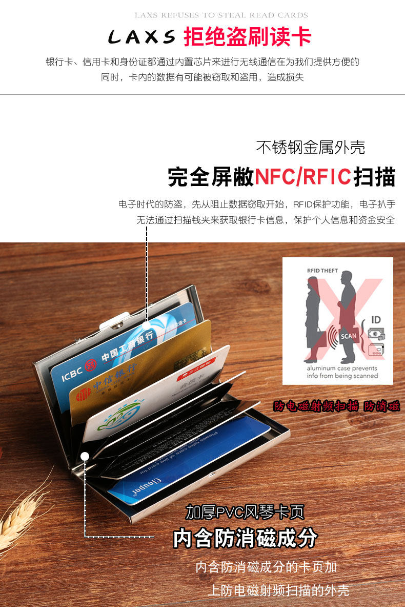 [Название продукта] Мужская карта сумка для карты нержавеющей стали Металлическая творческая карта Клип Ультра -толстый мужской антимагнитный многокартовый пакет кредитных карт