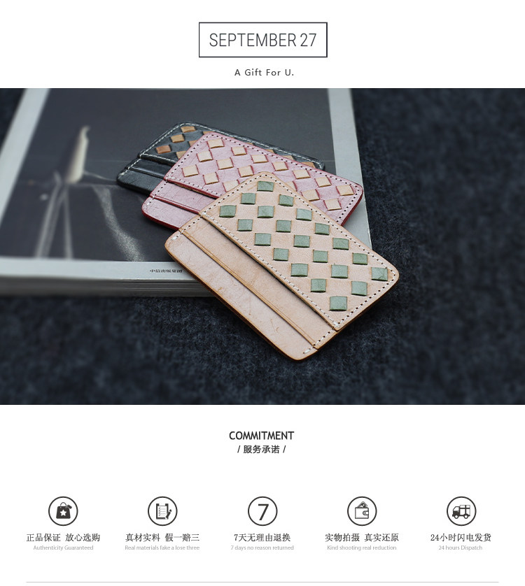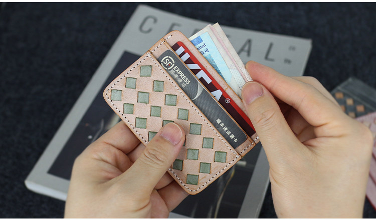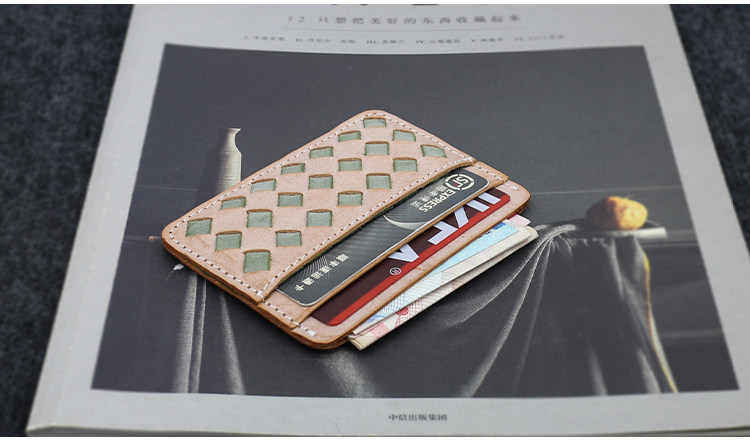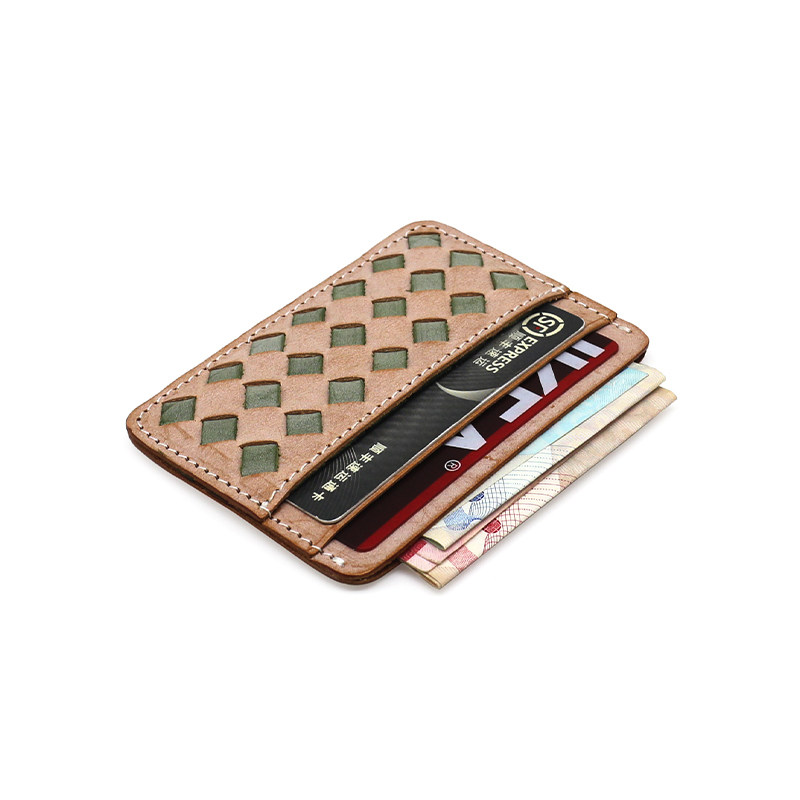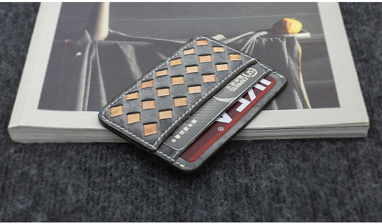Кожаный тонкий картхолдер, плетеный ретро комплект, кошелек, японские и корейские, из натуральной кожи