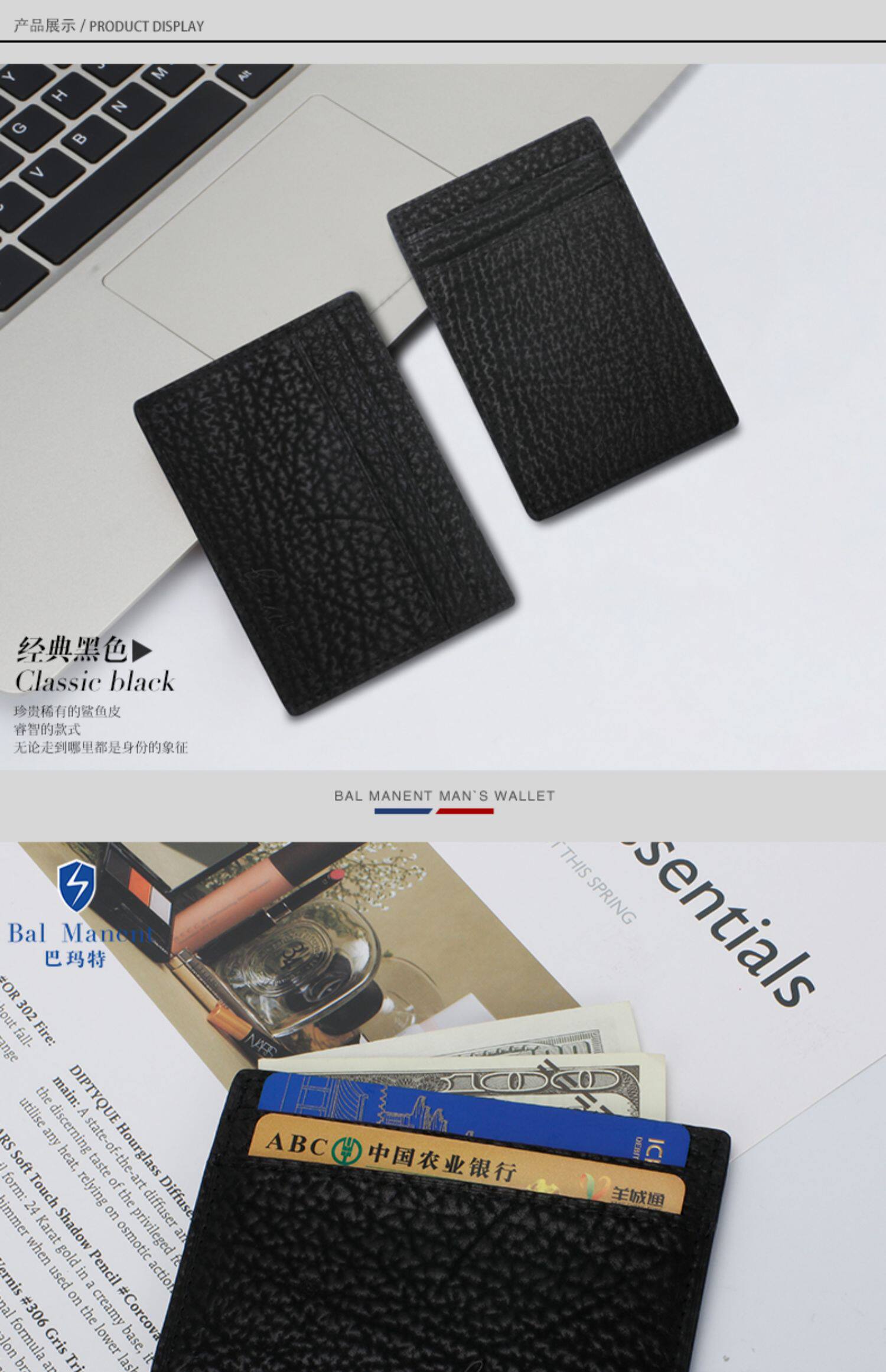 Акула, ультратонкий маленький вместительный и большой картхолдер, из натуральной кожи