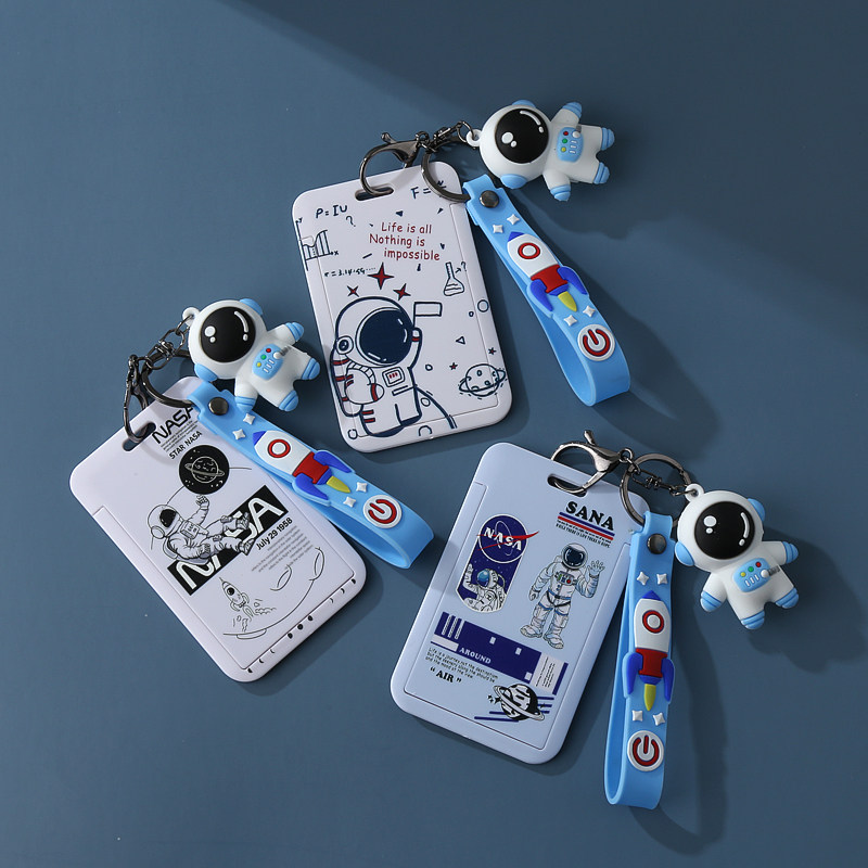 Космический картхолдер, милый чехол для проездного для школьников, ремешок на шнурке, брелок, кукла, защитный чехол