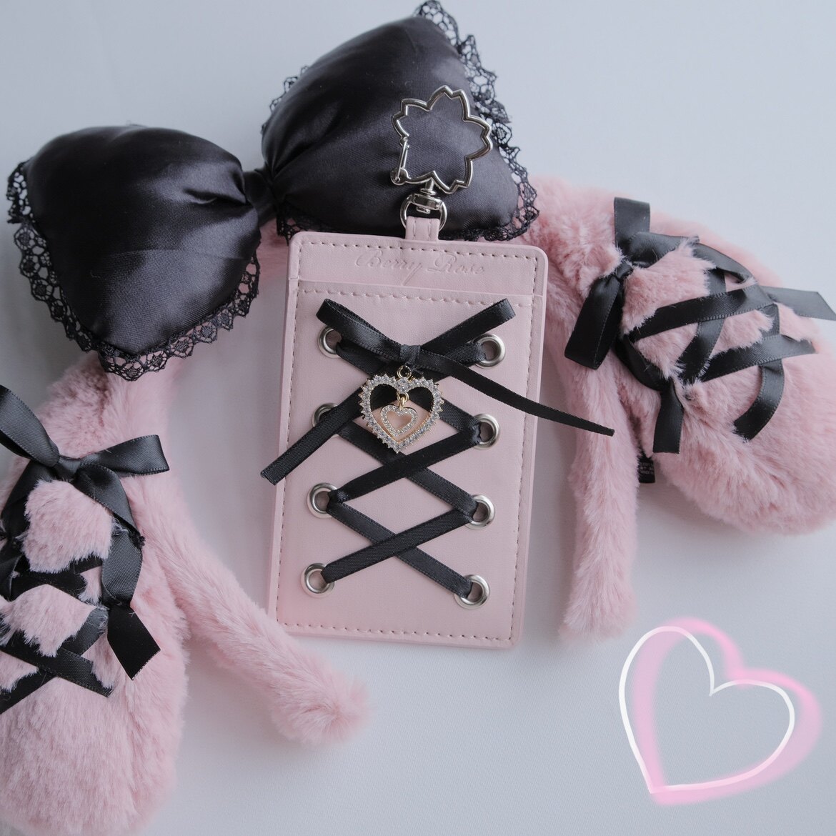 Черный двусторонний картхолдер, милая лента с бантиком