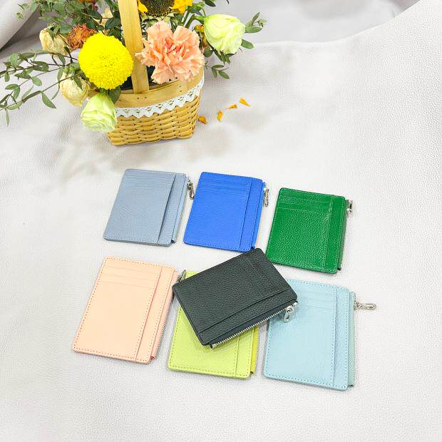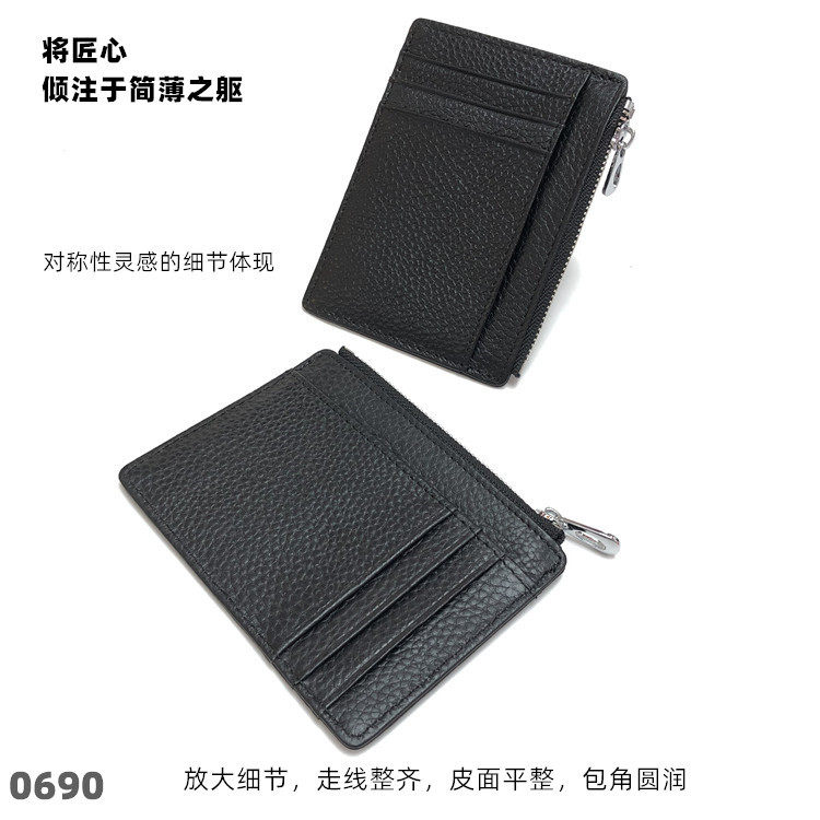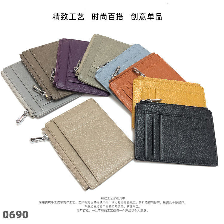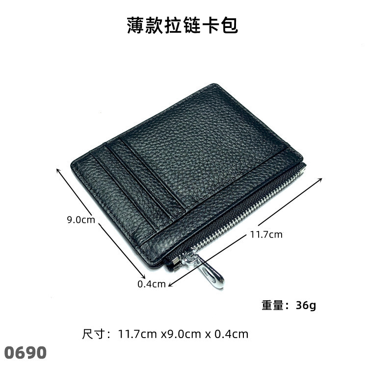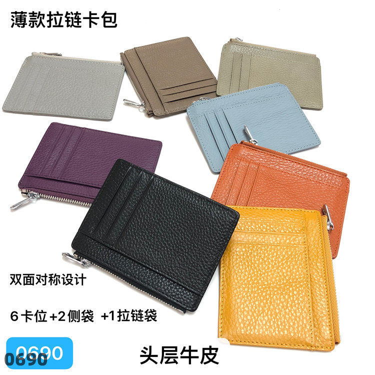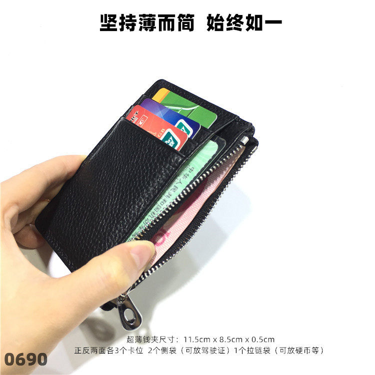 Тонкий двусторонний кошелек с молнией, картхолдер, бумажник для водительских прав подходит для мужчин и женщин, в корейском стиле, из натуральной кожи