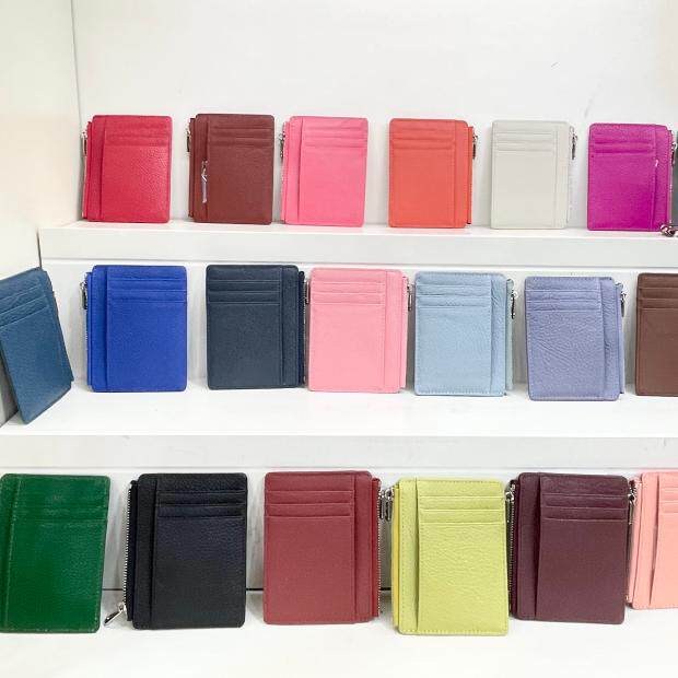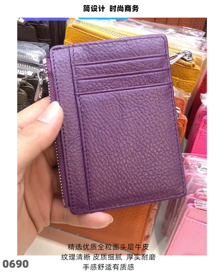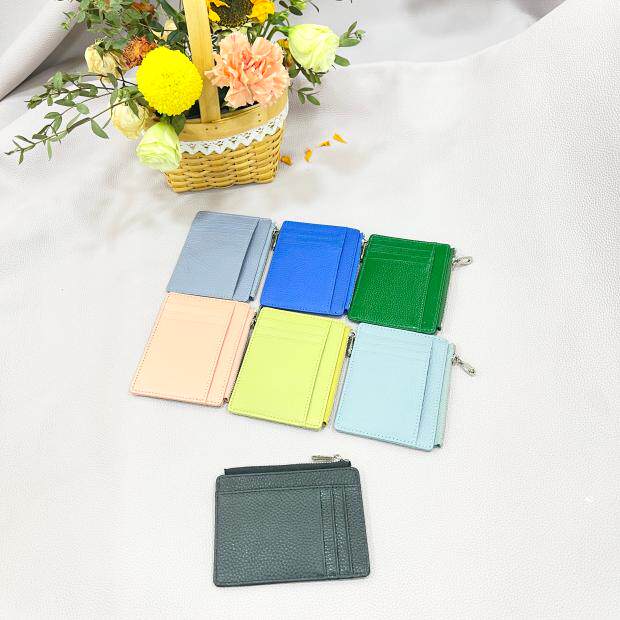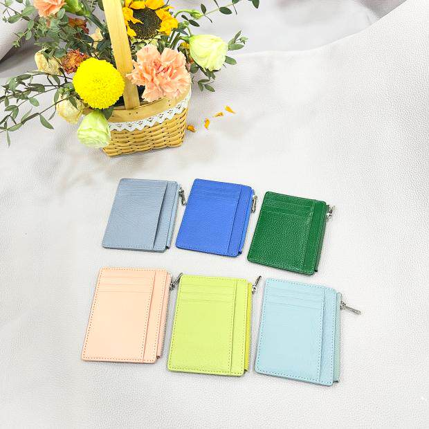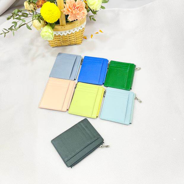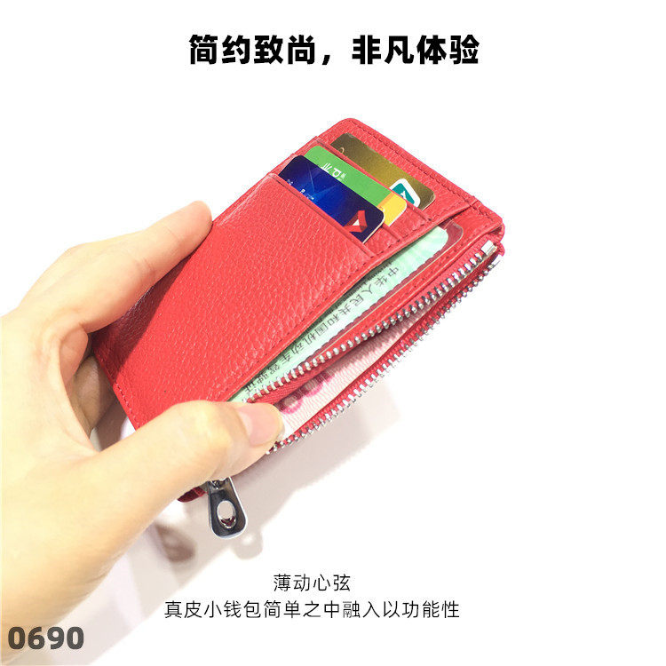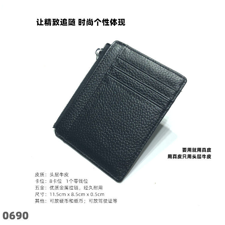 Тонкий двусторонний кошелек с молнией, картхолдер, бумажник для водительских прав подходит для мужчин и женщин, в корейском стиле, из натуральной кожи