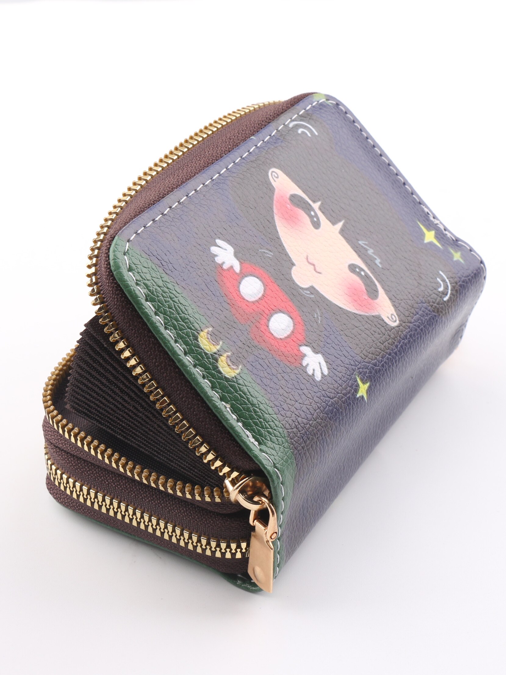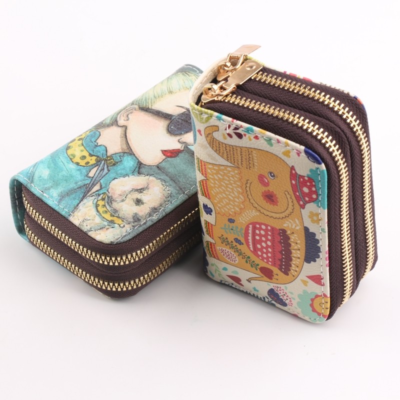 Двухэтажные карточки, орган, окрашенный картхолдер, кошелек, полиуретановая сумка через плечо, мультяшный маленький бумажник для визитных карточек