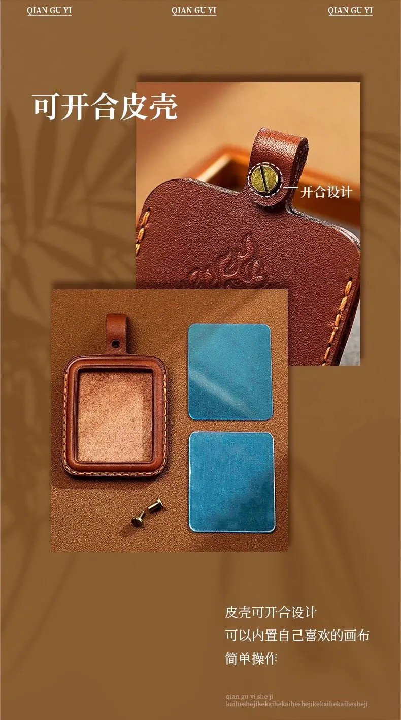 Кожаная квадратная подвеска ручной работы, открывающийся кулон, чехол
