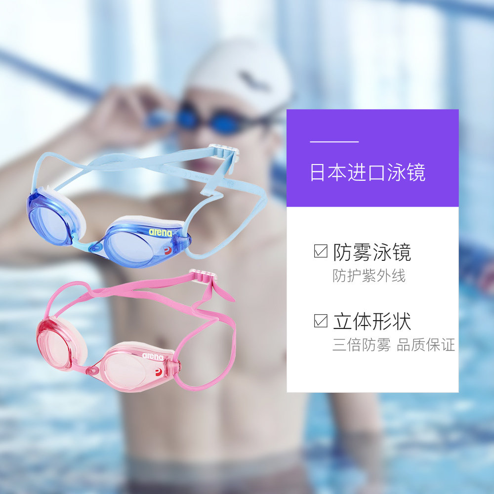 Водонепроницаемые розовые импортные очки для плавания подходит для мужчин и женщин без запотевания стекол