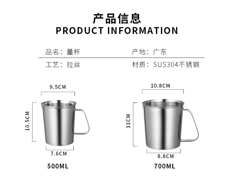 Чайная чашка из нержавеющей стали со шкалой, измерительная кружка, мерная ложка, нержавеющая сталь AISI 304, увеличенная толщина