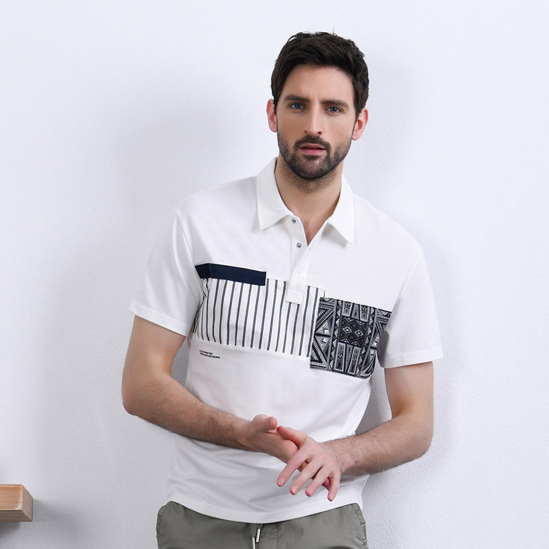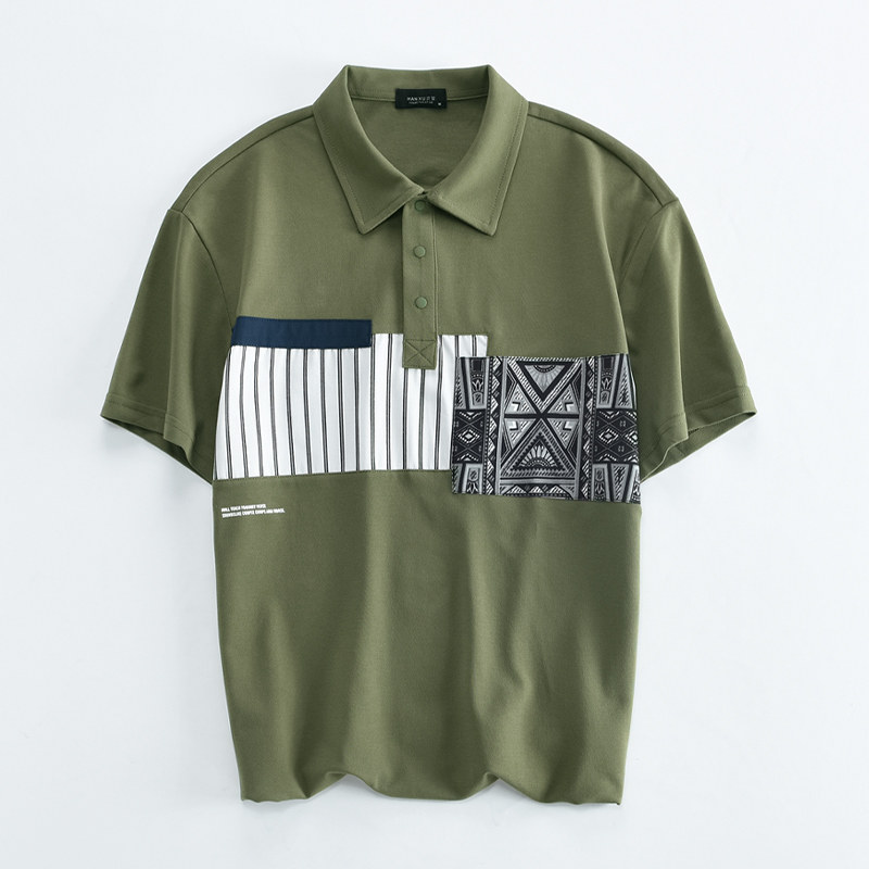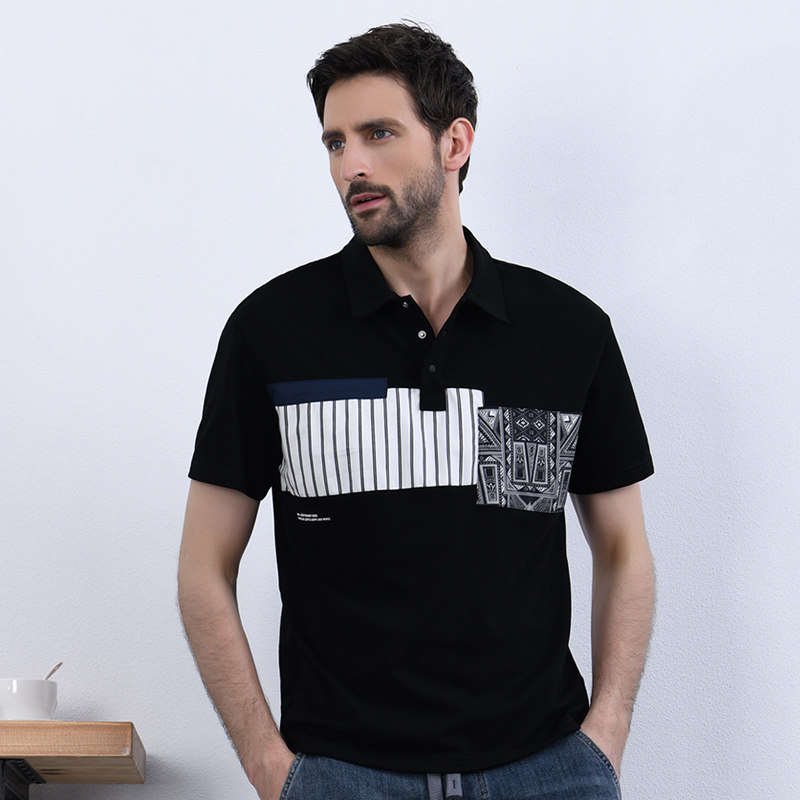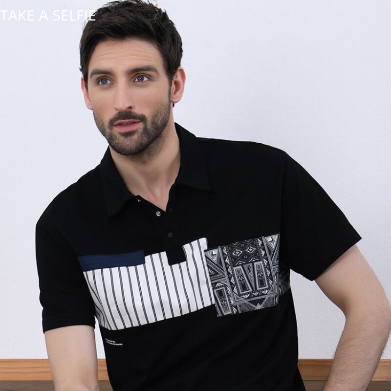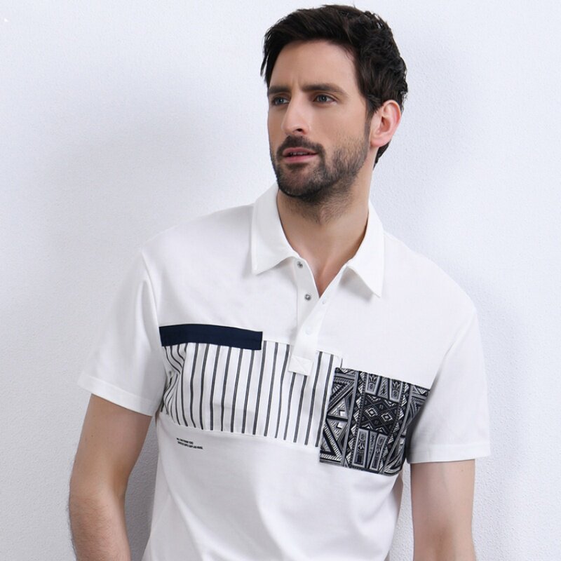 Сделайте селфи мужскую модную полосу 2024 Лето Новый ледяной шелк тонкие, удобные короткие рукава