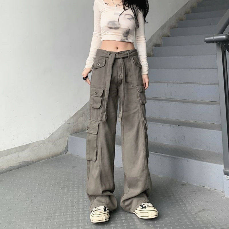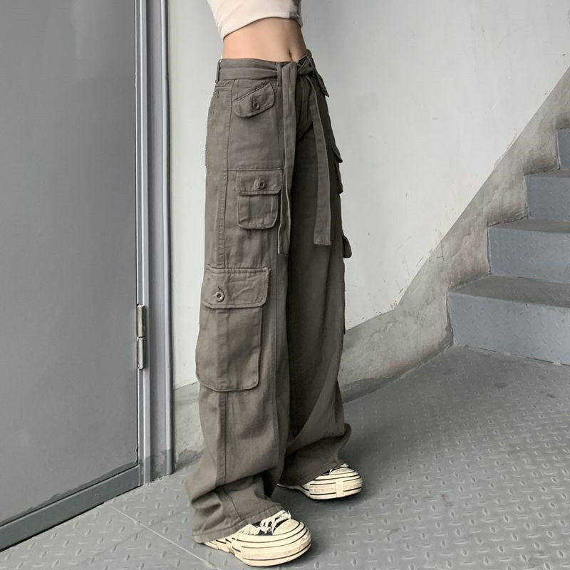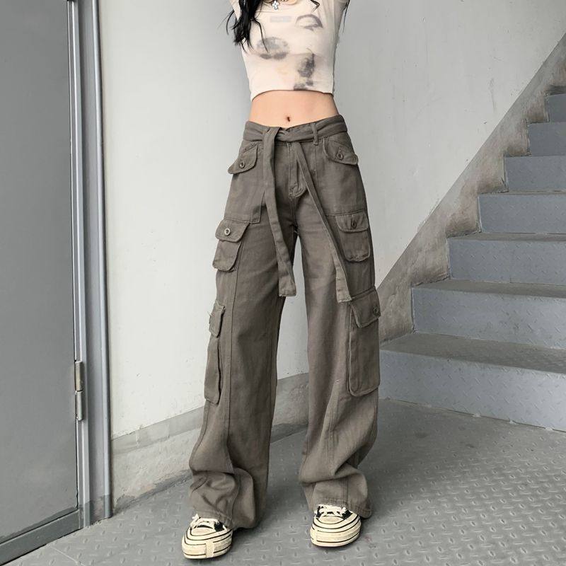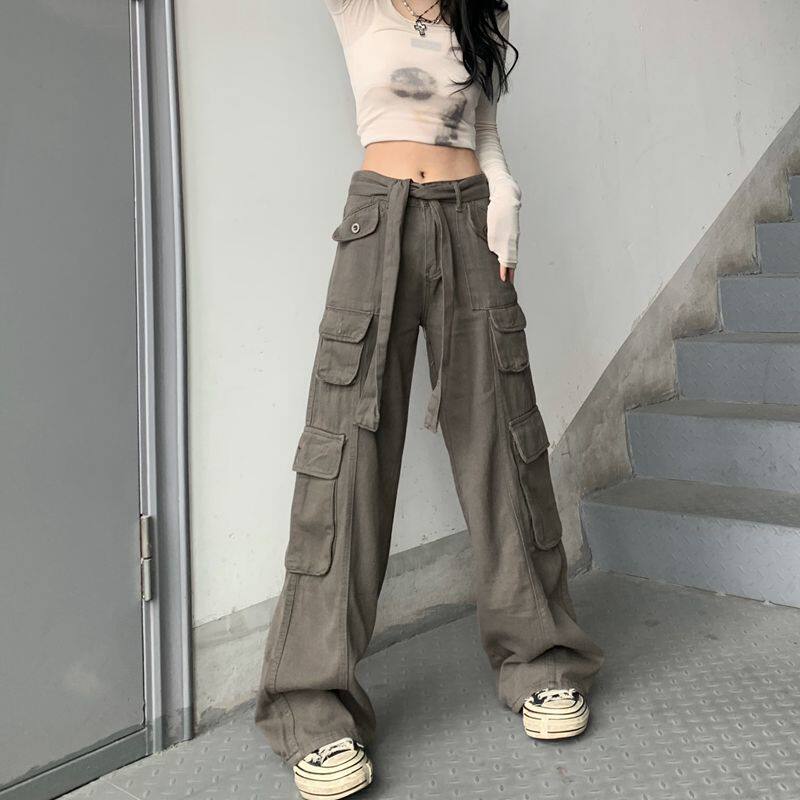 Грузовые штаны Женщины летние ретро штаны с прямой ногой прямо h