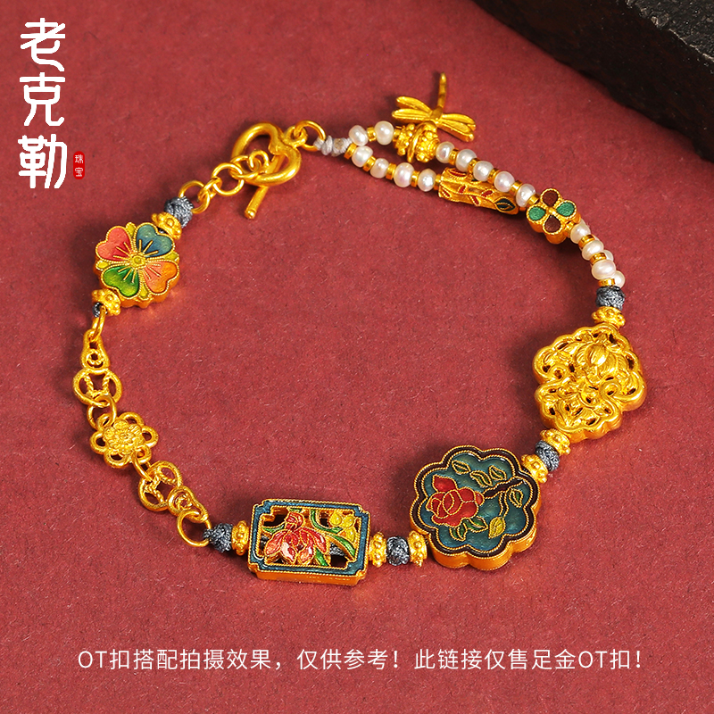 Золотой браслет, аксессуар, в цветочек